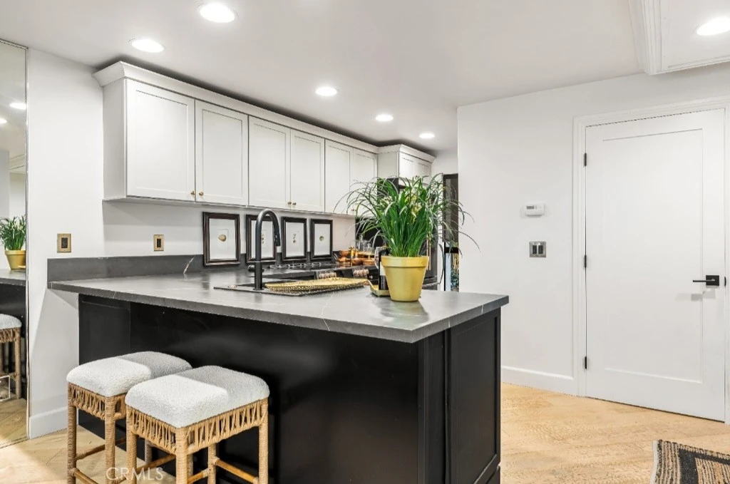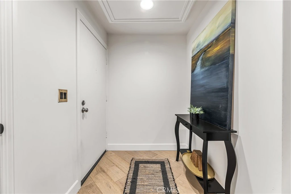 Discover the ultimate in sophisticated coastal living with this stunning, recently remodeled designer's home in Marina Pacifica. This unit is sold completely and beautifully furnished (turnkey), offering an immediate, effortless transition into a luxurious lifestyle. Every detail has been thoughtfully curated for style and comfort. The first-floor unit features a garden, private balcony, and assigned convenient underground parking. Step inside to find all-new, high-end Garrison Newport Beach engineered wood flooring throughout, artfully installed on the diagonal. The walls have been refinished with a smooth, updated texture, creating a pristine canvas for the stylish decor. The chef's ideal workspace awaits in the kitchen, boasting high-end Cafe' Appliances in matte black stainless and gold, including a counter-depth refrigerator, two-drawer dishwasher, and electric convection slide-in oven. The new kitchen features stunning unpolished porcelain countertops and a new black granite single-bowl sink complete this elegant space. Comfort extends to the living areas, with a sofa sleeper and chair sleeper allowing for three comfortable sleeping accommodations. The expanded fireplace, with its new unpolished porcelain hearth, is perfect for accommodating a large TV and mount. Enjoy peace of mind with a new 3-phase electrical panel, all new recessed lighting, and updated plumbing in both the bathroom and kitchen. The updated bath features a new shower, fixtures, vanity, and toilet. Just beyond, a spacious walk-in closet offers excellent storage and conveniently houses a high-end matte black LG washer and dryer. Experience year-round comfort in this northside unit, which stays at a perpetual 73 degrees all summer, leading to uncommonly low electric bills of just $125.00 a month all year. The outdoor spaces have also been meticulously maintained, with the balcony and French drains redone in 2024, a lush front garden redesigned with all new plants in 2024, and gorgeous new tile on the front porch. This home is truly a rare find, blending high-end finishes with practical luxury. Marina Pacifica offers an exceptional resort-style lifestyle, featuring six pools and spas, a clubhouse, and a fully equipped gym, all set within lush, waterfront grounds.The nearby waterways are set to be the 2028 Olympic venue for rowing events, adding a unique and timely appeal to this perfect boater's pied-a-terre or rental unit.