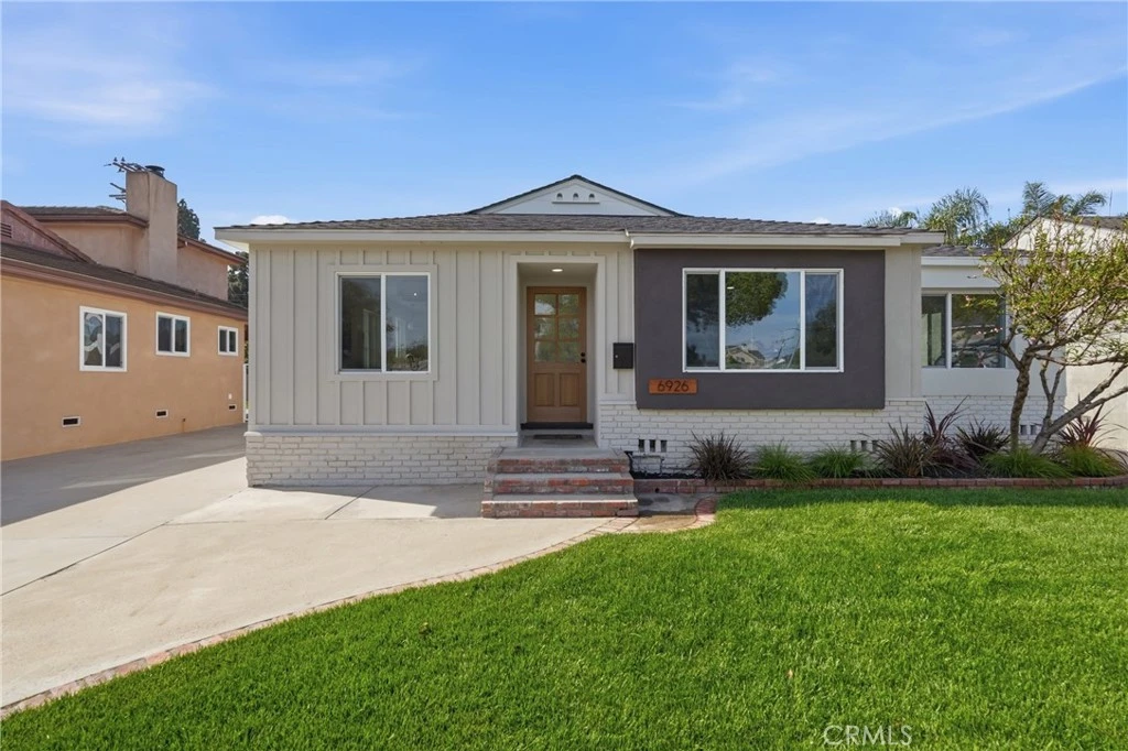 Welcome to 6926 e Peabody. Step inside to appreciate its transformation. You will enjoy the natural light pouring in from the large living room window, luxury vinyl flooring, and recessed lighting, creating a warm and welcoming space to entertain. The dining area chandelier complements the natural tones of the soft-closing drawers, cabinets, and quartz countertops in the remodeled kitchen, which connects to the laundry space, separated by a barn door. The primary bedroom suite includes indoor-outdoor living, with French Doors leading out to a covered back patio. The two bedrooms down the hall have recessed lighting and spacious closets. The backyard includes a finished two-car garage with epoxy flooring, a large covered porch with an outdoor kitchen, new grass, and a permitted den with a powder room, offering the new owner plenty of possibilities for their remodeled home. From the solar, the home remodel, AC, the beautiful outdoor space, and the location, we are excited to bring you this Long Beach home.