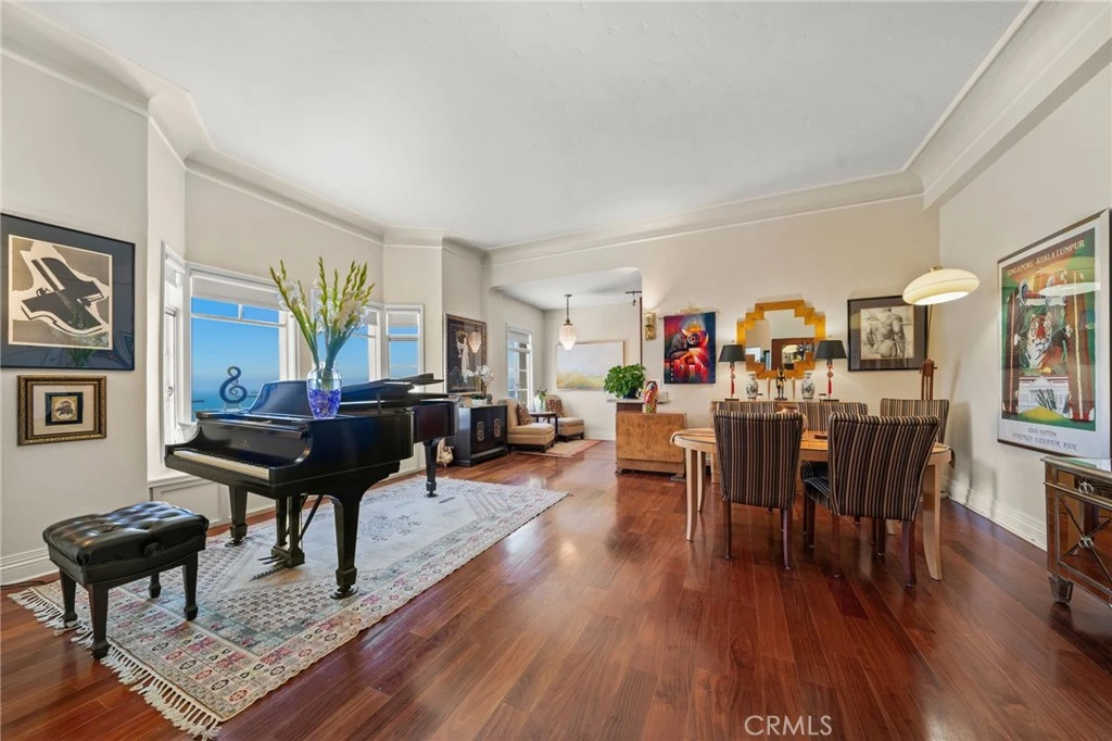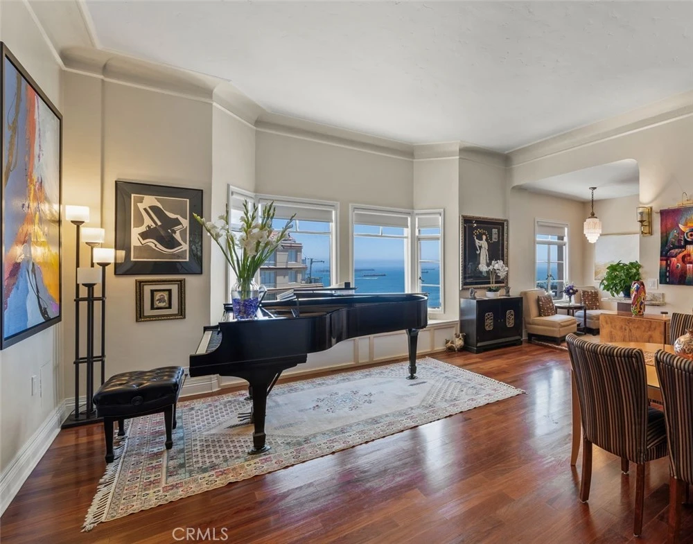 Penthouse-Level Oceanfront Living at the Iconic Villa Riviera Ownership includes the distinctive designation of a landmark on the National Registration of Historic Places. Perched high above the coastline, this exquisite 2-bedroom, 2-bath residence offers sweeping, unobstructed ocean views from every room and nearly 12-foot ceilings that elevate both light and scale. Originally two units thoughtfully combined, the floor plan provides exceptional flexibility—currently configured as a one-bedroom plus den, with the ability to re-separate the space into two private living areas or improve the two bedroom scenario. Sellers would consider selling separately - call for pricing. The primary suite features Brazilian mahogany flooring, refined lighting, and a serene coastal ambiance. A secondary suite—previously used as an efficiency—includes a built-in breakfast bar, kitchenette, walk-in closet, Bathroom with charming Deco tile work, pedestal sink & Sloane commode, making it ideal for flexible lifestyle, extended living, or potential income (buyer to verify). Set within the legendary Villa Riviera, a celebrated French Chateau-esq Neo-Gothic landmark known for its copper roof, gargoyles, and award-winning preservation, residents enjoy a lifestyle few buildings can replicate. HOA dues include all utilities—gas, electricity, heat, hot water, cable TV, and internet—providing meaningful monthly value. Owners benefit from significant Mills Act property tax savings, transferred to the buyer at closing. Community amenities include a grand ballroom with catering kitchen, ocean-view sundeck, BBQ areas, community guest suite, hidden garden with fountain and serenity. Parking on site is separately managed by the HOA. A rare opportunity to own a true destination residence where historic elegance meets elevated coastal living.