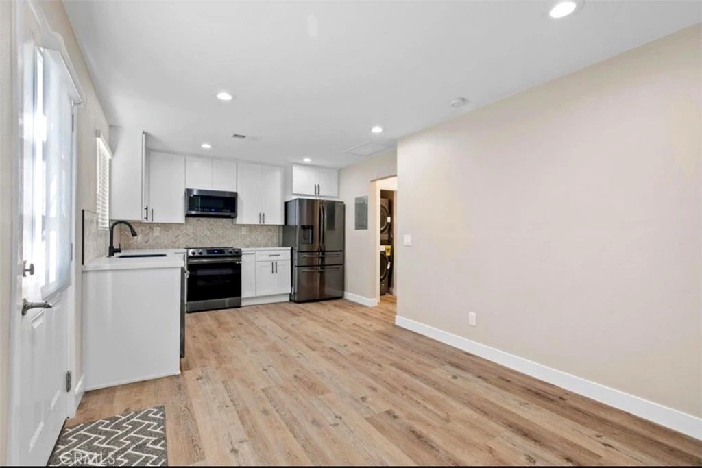 Welcome to this stunning, ADU located in the highly desirable Imperial Estates neighborhood of Long Beach. Thoughtfully designed with quality and comfort in mind, this 1-bedroom, 1-bathroom home offers modern living at its finest. The kitchen is fully equipped with top-of-the-line appliances, including a dishwasher, microwave, electric range, and a refrigerator with ice maker and filtered water. Crisp white cabinetry, a farmhouse sink, and sleek finishes create a clean, elevated space perfect for everyday living. Enjoy year-round comfort with air conditioning and heating, along with high-end vinyl plank flooring throughout. The unit also features a convenient in-unit stacked washer and dryer. The bathroom feels like a spa retreat, showcasing beautiful tile work, modern fixtures, a towel warmer, and an anti-fog mirror, perfect for relaxing after a long day! Additional highlights include light attic storage, a small private patio area at the entry, and plentiful street parking in a quiet, well-maintained neighborhood. This is a rare opportunity to live in a beautiful space. Come see it for yourself!