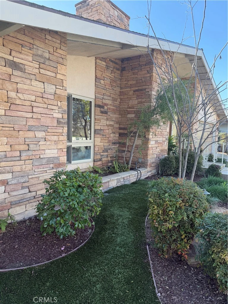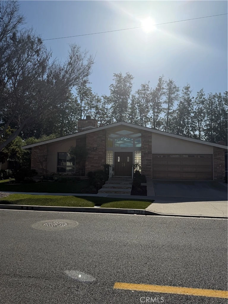 Welcome to this beautiful single-story home featuring fantastic curb appeal with a classic stone like facade and a spacious driveway. Step inside through the double-door entry to discover a bright and open floor plan highlighted by gleaming wood/laminate floors throughout. The heart of the home is the updated kitchen, complete with granite countertops, rich wood cabinetry, and stainless steel appliances, including a built in wall oven. Relax in the inviting living area featuring a cozy stone like fireplace and large sliding glass doors that flood the space with natural light and offer seamless indoor-outdoor living. The primary suite includes an ensuite bathroom with a tiled shower and glass-block accents. Outside, enjoy a private backyard retreat with a patio area perfect for entertaining. Don't miss this opportunity!