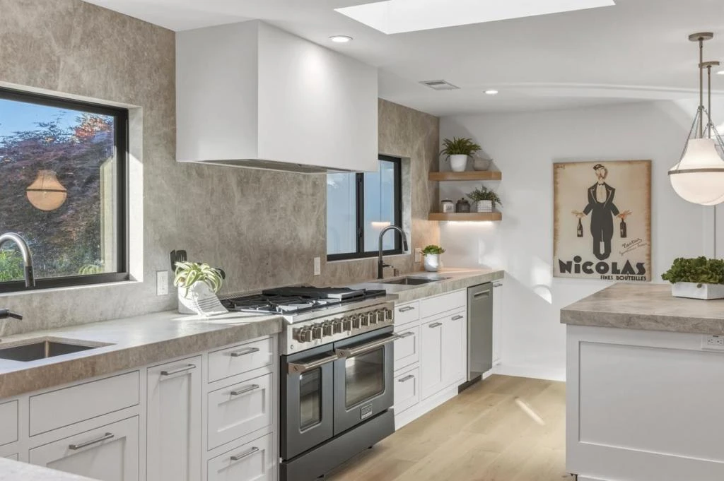 Nestled in the highly coveted North Los Altos Dos Palos neighborhood, this masterfully reimagined home represents a rare level of sophistication & modern utility. Moving far beyond a standard renovation, the property underwent an exhaustive, top-to-bottom overhaul, featuring a complete reframing of the common areas to create a breathtaking open-concept great room. The interior is defined by wide-plank European white oak flooring, smooth wall texturing, & a chefs kitchen anchored by a central island & premium Taj Mahal quartzite countertops with full-height backsplashes. Professional-grade appliances include a 48 dual-oven gas range, built-in refrigeration, & wine cooler. The reconfiguration added a third full bathroom & a separate laundry/mudroom, with all baths featuring marble counters & bidet toilets. Behind the walls, the infrastructure is essentially new, boasting 100% new water & waste lines, a new 200-amp main panel, a 50-amp EV charger, & a comprehensive HVAC system with all-new ducting. The exterior showcases Hardie board & batten siding, Marvin windows, & a finished garage with an over-sized glass door. Enjoy unobstructed views thanks to underground utilities & a fully landscaped backyard featuring a new irrigation system & dedicated gas line for your future firepit
