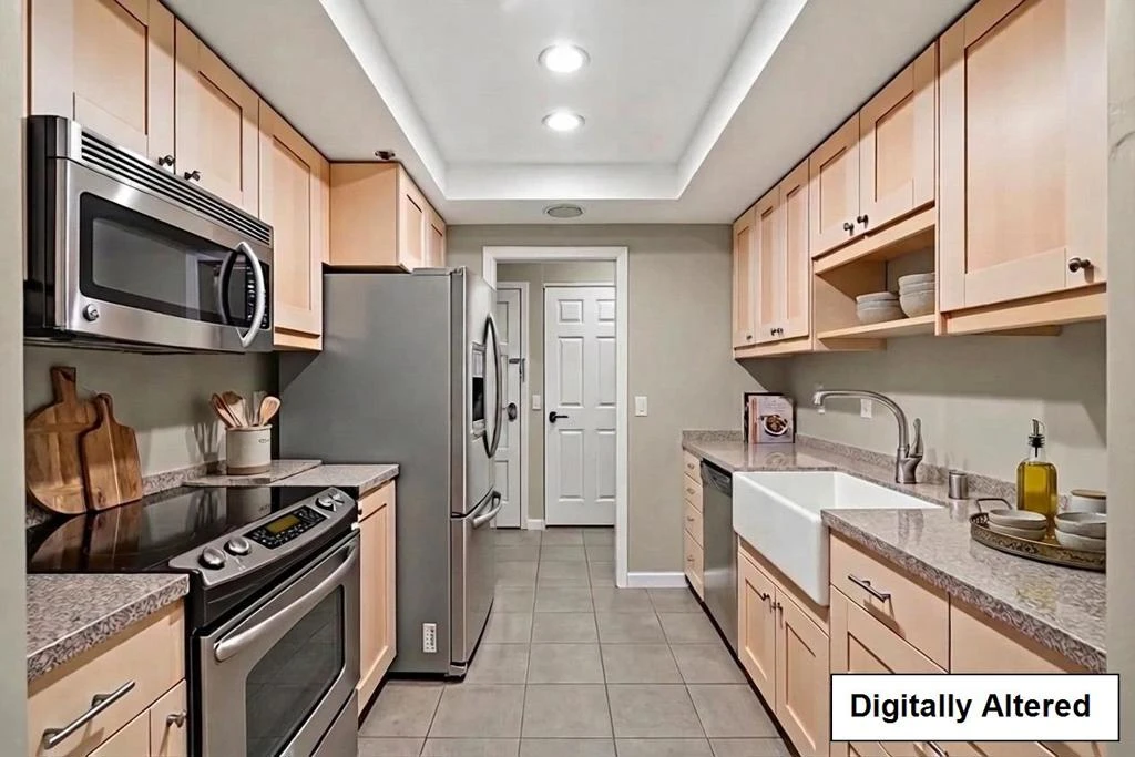 Enjoy stylish living at this rarely available building with only 9 condominiums just 3 short blocks from the Village. Top floor location and beautifully remodeled throughout with engineered wood or tile floors in every room. Large living/dining room combo with gas-log fireplace, private deck, wet bar, and wiring for surround sound. Remodeled kitchen with granite counters and stainless steel appliances. Lovely primary suite with customized wardrobe storage. Both bathrooms are luxuriously remodeled with contemporary designer style. Numerous smart home technology features for comfort and convenience. Concealed laundry, garage parking for 1, updated electrical can accommodate a backup generator. Wall unit air conditioning. Community pool. Great for starting out, moving up, or downsizing. Excellent Los Altos schools.