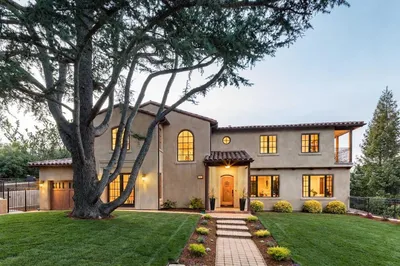 Expansive in scale and newly updated, this Mediterranean estate spans three levels with 4 bedrooms and 4.5 baths. Interiors feature refinished hardwood floors in a light matte hue and beautifully proportioned living spaces designed for both everyday comfort and entertaining. The newly updated kitchen is designer chic, complemented by a combination living room and family room with surround sound, formal dining room, plus a large recreation room on the lower level along with a cinema-quality theater. A private office or den adds to the appeal along with a newly updated full bath on the lower level, a main-level bedroom suite, and an upstairs primary suite with Bay views, plus two bedrooms and a bath. Outdoor living is equally inviting with multiple places for lounging and entertaining, including a large spa, fireplace terrace, premium sound system, and expansive outdoor kitchen. Two separate attached garages provide parking for 3 cars plus ample additional off-street parking. All of this is less than one mile from the downtown Los Altos Village and with access to excellent Los Altos schools.