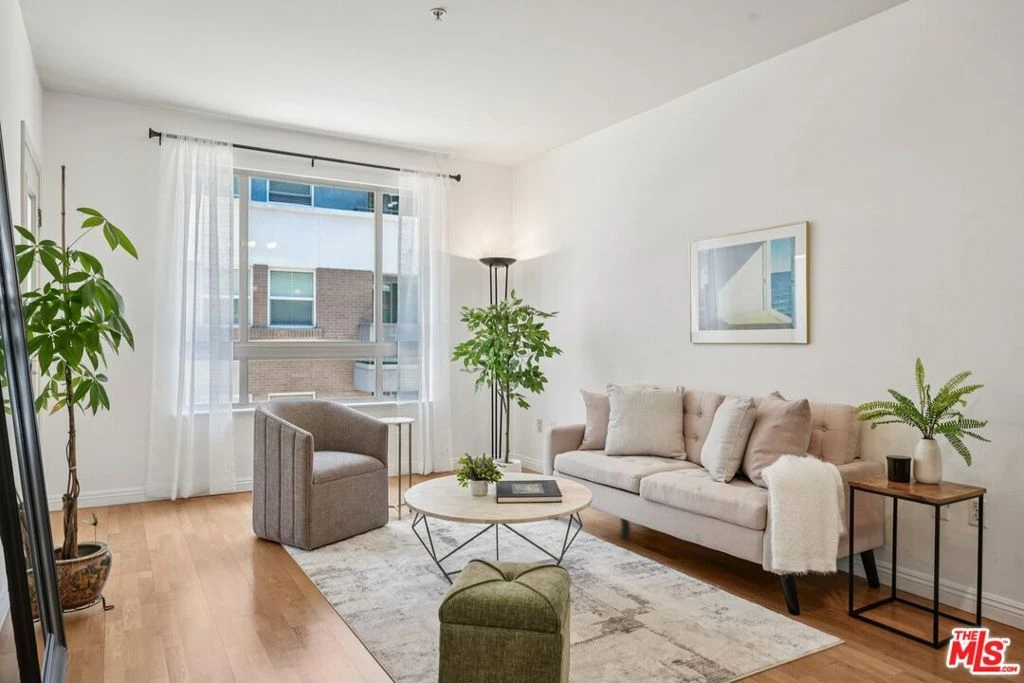 Welcome to this charming 1-bedroom, 1-bath condo at Savoy, an east-facing end unit that feels both peaceful and private. Natural light fills the living space, enhanced by light wood floors and a soft, neutral palette. The open living and dining area flows onto a private balcony with bonus storage, perfect for enjoying a morning coffee or container garden. The bedroom is freshly updated with brand-new carpet and offers a quiet retreat, while the kitchen features granite countertops and stainless steel appliances. The spacious bathroom includes a large vanity, a tub with sliding glass doors and washer & dryer. Additional highlights include central AC, one assigned parking space, and a rare private storage unit. Savoy offers resort-style amenities: pool, spa, fitness center, business lounge, media room, rooftop decks, and 24-hour security all with low HOA dues. Located in DTLA's Little Tokyo/Arts District border, you're just blocks from metro access, restaurants, markets, and galleries.