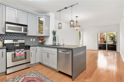 Welcome to elevated urban living in this beautifully updated corner unit at The Savoy, perfectly positioned at the crossroads of Little Tokyo and the Arts District—one of Downtown LA’s most vibrant and walkable neighborhoods. Located directly across from the new Regional Connector Metro Station, this home offers unmatched convenience with world-class dining, nightlife, and culture near by. Inside, the residence features an open-concept layout filled with natural light from oversized windows, complemented by a spacious private balcony overlooking the pool—ideal for morning coffee or evening unwinding. The remodeled kitchen is designed for both style and function, showcasing quartz countertops, a modern tile backsplash, updated stainless-steel appliances, soft-close cabinetry, and a breakfast bar perfect for casual dining or entertaining. A dedicated mini-bar with a built-in wine cooler adds an effortless hosting touch. The generously sized bedroom offers flexibility for a home office or reading nook, while the updated bathroom includes a bidet, shower/tub combo, and a brand-new, never-used in-unit side-by-side washer and dryer. Freshly painted and move-in ready, this home also includes assigned parking and a rare oversized private storage unit—a true luxury in the building. Residents of The Savoy enjoy an impressive collection of resort-style amenities, including 24-hour security and concierge, pool and spa, rooftop deck with skyline views, fitness center, yoga room, screening room, business center, clubhouse, BBQ areas, and gated guest parking.