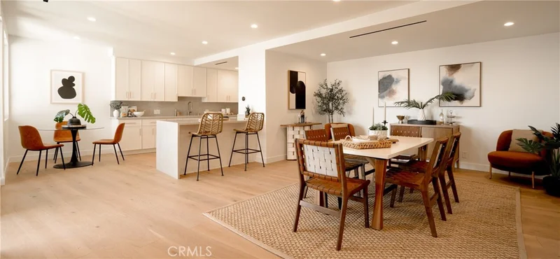 Welcome to this stunning modern Penthouse with panoramic Downtown LA skyline views located in one of most prestigious LA neighborhoods. This exquisite, contemporary home offers an unparalleled blend of sophisticated design, abundant natural light, and breathtaking PANORAMIC VIEWS!!! Perched in an elevated position, this unit captures sweeping vistas of the glittering downtown high-rises, from the iconic skyscrapers to the sprawling urban landscape below- especially magical at twilight and nighttime when the city lights come alive. The expensive open-concept great room seamlessly integrates the living, dining, and the kitchen areas, creating an ideal flow for entertaining and everyday living. Neutral, high-end finishes dominate throughout: warm neutral-toned hardwood flooring, creamy beige walls, and elegant stone and tile accents. A dramatic floor to ceiling fireplace serves as a striking focal point in the living area. Floor to ceiling sliding glass doors and large windows unobstructed city and horizon views, flooding the space with light by day and offering mesmerizing nighttime panorama. The chef's kitchen is a masterpiece of modern elegance, featuring custom cabinetry in soft taupe/beige tones, a large center island with waterfall-edge quartz countertops, and premium stainless-steel appliances. The primary bedroom is a serene retreat with large walk in closet and direct access to a balcony overlooking city skyline. Additional bedrooms maintain the same elevated aesthetics. The bathrooms are showcasing luxurious pebble/terrazzo style accent walls and flooring, statement vessel in natural stone with unique hand carved, high-end matte black faucets and fixtures, glass-enclosed showers and a soaking tub. This exceptional residence combines urban sophisticated with resort-like tranquility, making it an ideal sanctuary for those seeking luxury living with iconic Los Angeles views. Perfect for discerning buyers who appreciate modern architecture, premium materials, and an unbeatable city backdrop. Come and explore more about this piece of gem!
