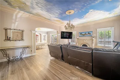 Experience the epitome of luxury living in this stunning residence located in a prestigious neighborhood. This architecturally significant home seamlessly blends classic elegance with modern sophistication. Upon entering, you are greeted by a grand foyer that leads into a spacious living room featuring high ceilings, intricate molding, and a custom fireplace that serves as the focal point.