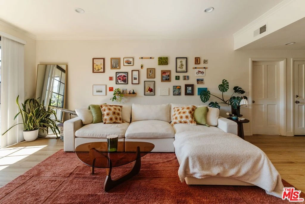Spacious single story condo tucked away in a tree lined neighborhood just blocks from Rancho Park, Fox Studios, and Century City. Set back from the street in a boutique 12 unit building, enter into the turn key home to find a large living room with fireplace, framed formal dining area, and south facing balcony through an oversized sliding glass door. Adjacent is a large kitchen with two toned cabinets, quartz countertops, upgraded hardware and appliances, and a butcher block island with bar seating. The primary bedroom suite features a long double vanity, soaking tub, fully built out walk-in closet, and tiled shower with a sliding glass enclosure. An additional guest bedroom and bathroom complete the home, which also includes in-unit washer and dryer, two parking spaces, and large additional storage locker outside the unit. The well maintained building has a community gym area, community sauna, and guest parking. Situated in the Westwood Charter school district, and an excellent central location just a short drive to Beverly Hills, Westwood, UCLA, and the Westfield mall.