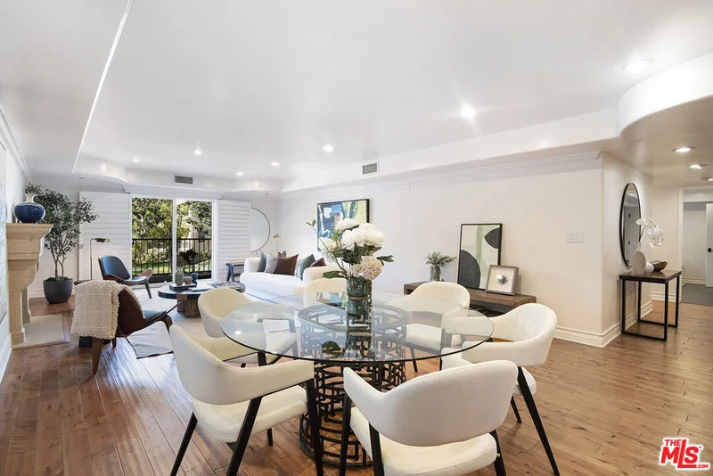 Perched high above the street in a fantastic location next to Century City, this beautiful and spacious condo is in a Mediterranean-style complex built in 2008. This light-filled home features rich hardwood floors, recessed lighting, and an open floor plan outstanding for both living and entertaining. The chef's kitchen is appointed with granite countertops, stainless steel appliances, and a Viking oven and range. It is open to a large dining area and a living room anchored by an elegant gas fireplace. Plantation shutters and two private balconies add charm and provide great indoor-outdoor flow. Both bedrooms are thoughtfully positioned away from the main living spaces for added privacy and feature their own ensuite bathrooms. The spacious primary suite includes a large walk-in closet, private balcony, and a beautifully appointed bathroom with dual sink vanity, natural stone finishes, shower and soaking tub. The second bedroom is well-sized with its own full bath. The powder room is just off the entry and is beautifully designed. Additional highlights include in-unit laundry, two tandem underground parking spaces, and guest parking. Dining and shopping in Century City is just minutes away. The location is very close to UCLA, Beverly Hills, and world class beaches of Santa Monica and Malibu.