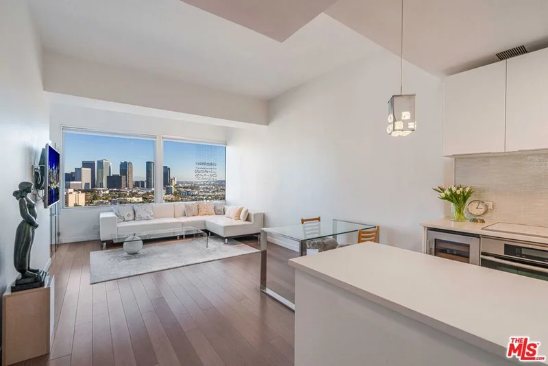 Breathtaking panoramic views.kitchen offering quartz counters, stainless steel appliances.The primary bedroom offers a peaceful retreat with an en-suite bathroom.The second bedroom/den is perfect for guests or as a dedicated home office. city views from every room and south-facing balcony. Residents enjoy the convenience of concierge service, high-speed internet and cable included, a pool, and private storage. Just moments from Westwood Village, UCLA, Beverly Hills, and easy access to the 405.HOA including electric, cable, water.