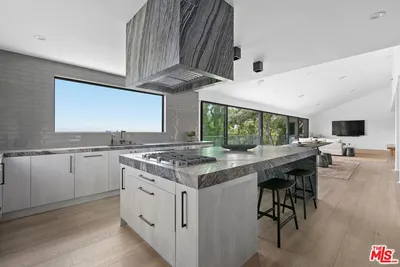 Located in one of Bel Air's most picturesque vantage points, high above the Bel Air Country Club golf course, this four-bedroom, four-bathroom, three-level residence is defined by elevated finishes, sweeping views, and an abundance of natural light. The main level unfolds in a spacious open-concept design, where the living, dining, and kitchen spaces flow effortlessly together, all positioned to capture unobstructed views of the Bel Air hills, the Los Angeles skyline, and the impeccably maintained fairways below.At the center of the home, the kitchen makes a bold statement with a dramatic waterfall-edge island, refined modern finishes, premium appliances, and an exceptionally large walk-in pantry, creating an ideal environment for both everyday living and effortless entertaining. The second level is anchored by the primary suite, featuring a generous walk-in closet and a spa-like bath with a freestanding soaking tub, dual showers, and a picture-window framing panoramic views. An adjacent outdoor terrace extends the suite, offering a peaceful retreat immersed in the surrounding landscape. Three additional bedrooms, each with its own en-suite bath, provide comfort and privacy for family or guests. The lower level introduces a temperature-controlled wine cellar, a private sauna, and a flexible fourth bedroom currently configured as a recreation and game room. Expansive wraparound glass balconies throughout the home blur the line between indoors and out, enhancing the connection to the dramatic natural setting and completing this exceptional Bel Air offering.