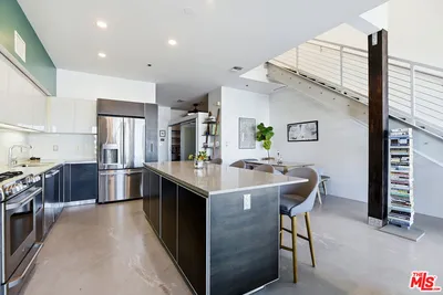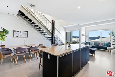 Located in the coveted T-Lofts, this top-floor, quiet urban loft offers open, light-filled living defined by high ceilings, an expansive open floor plan, and a modern industrial aesthetic. Designed for both style and function, the home provides exceptional privacy with no unit above, excellent sound insulation, and west-facing exposure that captures warm sunset light. The main level showcases classic loft elements with polished concrete floors, soaring ceilings, and oversized windows that fill the space with natural light and a refreshing ocean breeze. The open-concept layout seamlessly connects the living, dining, and kitchen areas, well suited for entertaining, working from home, or everyday living. The kitchen features Italian cabinetry, Caesar-stone countertops, and stainless steel appliances, including a brand-new refrigerator and microwave/air fryer. The interior was freshly painted in 2024 for a move-in-ready presentation. Upstairs are two bedrooms, including a spacious primary suite that continues the loft-inspired design with newly installed flooring and a custom Container Store Elfa walk-in closet system. A distinctive industrial-style door opens directly from the primary bedroom, offering a unique indoor-outdoor connection and the opportunity to enjoy nighttime sky views from the bedroom. The renovated primary bathroom features double sinks, an oversized shower, a separate soaking tub, and Kohler fixtures.A bonus space on the main level provides additional flexibility and can be used as a home office, creative studio, or reading nook ideal for today's work-from-home lifestyle. Two private outdoor areas further enhance indoor-outdoor living: a west-facing balcony on the main level and an upper deck with a roll-up door, ideal for entertaining or enjoying sunset views .T-Lofts amenities include a landscaped courtyard, BBQ area, jacuzzi, fitness center conveniently located on the same level as the unit, secure entry, EV charging stations, bike racks, and two tandem parking spaces. Guest parking is available with approximately 35 spaces for residents and visitors. Ideally situated in a highly walkable location near Sawtelle's dining and shopping, with convenient access to the Expo Line, Santa Monica, Brentwood, Century City, and Beverly Hills, this home offers a well-balanced blend of design, comfort, and urban convenience.