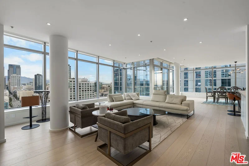 Experience elevated urban living at EVO, one of South Park's most iconic and sought-after modern high-rise communities. Completed in 2008 and LEED Silver certified, EVO is known for its sleek glass-and-steel architecture, contemporary design, and resort-style amenities that redefine Downtown Los Angeles living. Residents enjoy a stunning 6th-floor sun deck featuring a pool, spa, outdoor kitchen, lounge areas, and fireplace, along with the sophisticated rooftop resident lounge on the 24th floor, offering panoramic skyline views. Additional amenities include a state-of-the-art fitness center, 24-hour security, concierge services, and secured gated parking delivering both luxury and convenience in a full-service building. This rare northeast-facing corner residence offers breathtaking, unobstructed Downtown skyline views and is filled with natural light throughout the day. Expansive floor-to-ceiling windows and soaring approximately 11-foot ceilings create a dramatic sense of openness and volume, enhancing the airy, loft-style ambiance. The highly desirable corner orientation provides both privacy and dynamic city views from multiple vantage points. Fully remodeled within the past two years, this residence has been thoughtfully upgraded with high-end designer finishes, renowned luxury brand materials, and eco-friendly improvements. The modern kitchen features premium appliances and refined detailing, seamlessly blending functionality with style. Carefully selected finishes throughout the home create a sophisticated yet warm atmosphere, offering a perfect balance of contemporary elegance and everyday comfort. Move-in ready and impeccably maintained, this turnkey home presents a rare opportunity to own a fully upgraded corner unit in one of Downtown LA's premier lifestyle buildings ideal for those seeking design, views, and elevated city living all in one.