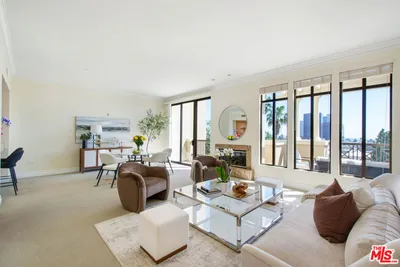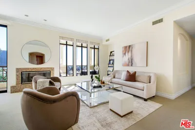 Experience the pinnacle of Brentwood sophistication. Perched atop the prestigious Westgate Condominiums, this breathtaking 2-Bedroom, 2.5-Bathroom Penthouse plus spacious Den is a masterclass in coastal-urban luxury and an entertainer's delight. Originally hand-selected by the developer, this residence boasts soaring 10-foot ceilings and an expansive, sun-drenched floor plan anchored by a stately gas fireplace. Designed to inspire, every corner of the home captures a symphony of vistas, from the rugged beauty of the Santa Monica Mountains and the Getty Center to enchanting peek-a-boo ocean views shimmering in the distance. The gourmet kitchen features an eat-in layout with mountain views and sliding-door access to a terrace, perfect for morning coffee or outdoor dining. Spanning four magnificent terraces totaling approximately 500 sq. ft. the indoor-outdoor flow is simply unparalleled. The palatial primary suite is a true sanctuary, bright and inviting with a fireplace, private sitting area, walk-in closet, and a spacious spa-inspired marble bath featuring dual sinks, a soaking tub, and separate shower. For the discerning collector, the property includes a staggering, oversized private garage, a rare find with room for a third vehicle and secured storage. Hosting is effortless with 30+ dedicated guest parking spaces and a high-tech haven equipped with gigabit fiber and a bespoke 24/7 security system. Complemented by white-glove 24-hour concierge service, a fitness center, and a lush spa, this residence is situated moments from San Vicente's world-class dining, boutiques, coffee houses and markets. Unrivaled exclusivity and modern elegance await.