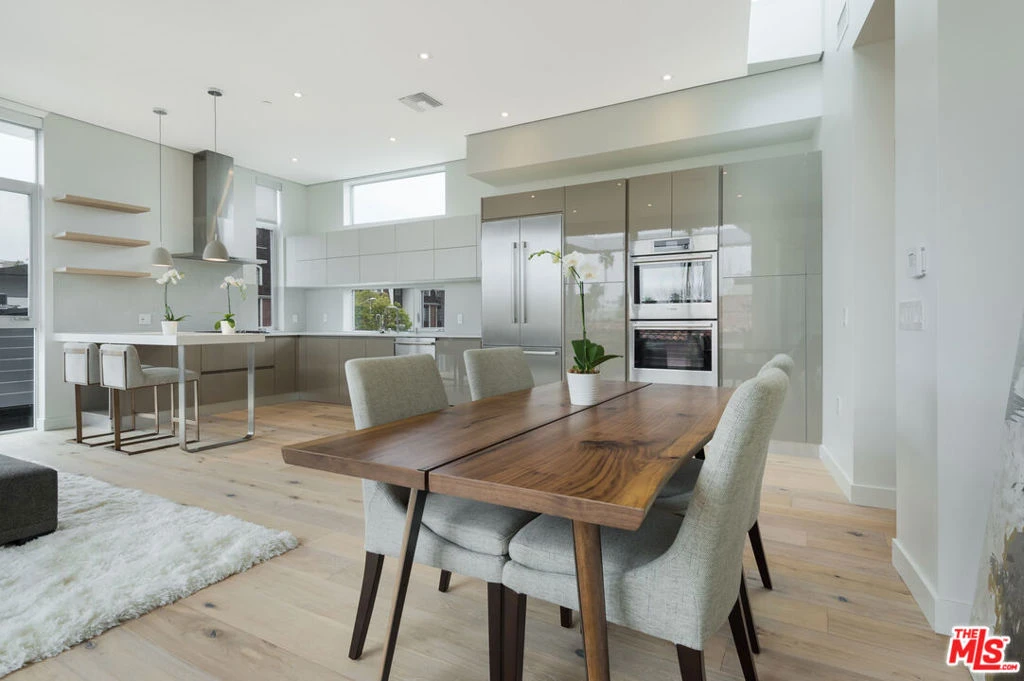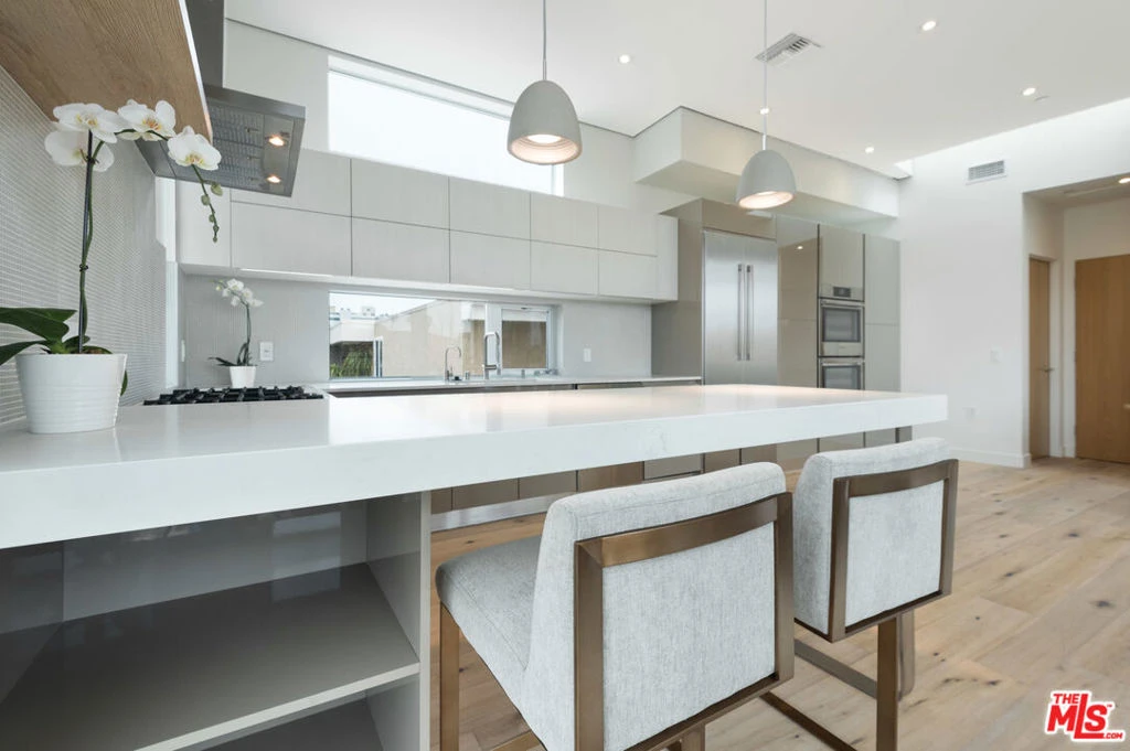 Stunning contemporary multi-level townhome with a brilliant orchestration of light, steel, and walls of glass. This 3-bedroom, 3.5 bath home features white oak floors throughout, Kitchen with Bosch stainless steel appliances, quartz counter top, glass backsplash and eating counter. Master suite has a large enclosed tile patio with garden landscaping, oversized walk in closet, soaking tub, and a large shower. The private spaces include 2 additional bedroom suites. Enjoy the beautiful sunsets from the view roof deck with panoramic and ocean vistas. Additions include direct access of 2 car parking garage, 1 dedicated guest space, laundry closet, 3 zone a/c, and in-unit elevator. Photos are of model unit in the complex and may not represent actual unit. Available for move-in May 1.
