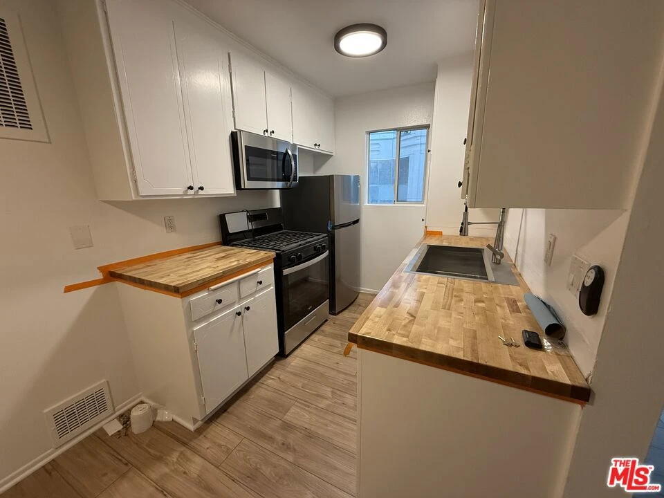 Now available for lease is a spacious and move-in ready 1-bedroom, 1-bath, 2nd floor, apartment located in the heart of West LA, Brentwood adjacent. This well-maintained, newly renovated, corner unit offers a bright and spacious bedroom, a private Juliette balcony and a beautifully updated kitchen with stainless steel appliances including a refrigerator, dishwasher, microwave, and stove. The unit also features a stylish ceiling fan, newly installed attractive light-colored flooring, renovated shower stall and one included community garage parking space. Set in a quiet building with respectful neighbors, residents enjoy secure gated entry, a well-kept common area, and convenient on-site laundry. This location is central to everything just minutes from Brentwood, Santa Monica, and the beach with easy access to both the 10 and 405 freeways. You'll be close to grocery stores, restaurants, theaters, and parks, making it a perfect spot for anyone seeking comfort and convenience. Tenants are responsible for electricity through LADWP and a share of shared water and gas. Don't miss this opportunity to live in one of West LA's most desirable neighborhoods.