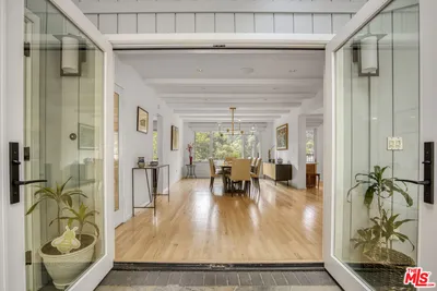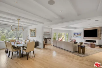 A must see! Gated in lower Bel Air, this unique, serene 3-acre property is tucked far back from the street by a long private drive. The large flat lawn, patio, and deck areas are surrounded by pine and citrus trees, offering a rare combination of total privacy, scale and natural beauty. The extensive outdoor patio entertaining area is equipped with heaters and fans, a built-in barbecue and refrigerator. The recently remodeled bright grand room and dining area has a fireplace, bar with wine refrigerator, and a 15-foot bifold glass door providing an expansive indoor-outdoor living feel. The kitchen is well equipped, including an indoor grill and warmer, and has an eating area that overlooks the lush backyard. The 1st floor primary en suite bedroom has a vaulted ceiling, jacuzzi bath, and private deck/garden. 3 additional bedrooms on the main floor plus a den area all have garden or canyon views. Upstairs is an additional large bedroom & bathroom, with potential use as a gym, studio, or guest room. The attached 2 car garage, with direct access to the home, has a work bench, storage loft, and 2 EV charging ports. There is additional parking for 5 cars within the gated area. The house is equipped with a security system and a sound system. The central heating and air conditioning systems, irrigation system, and electric gate can be controlled remotely. The property offers a convenient location to excellent schools, and is ideally located for easy access to UCLA, Beverly Hills, Santa Monica and the San Fernando Valley.