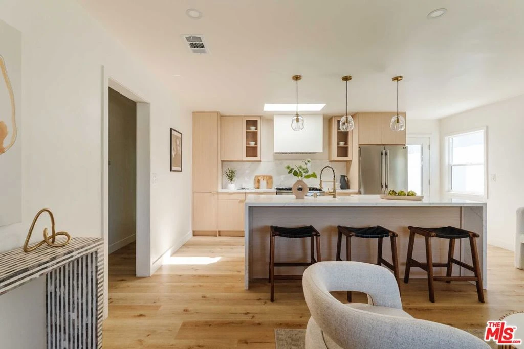 Nestled behind a privacy hedge and gated entry, this newly remodeled retreat perfectly blends charm and sophistication. An open-concept living space welcomes guests, anchored by a chef's kitchen featuring a stunning center island and premium appliances. The interior flows effortlessly toward the private quarters, where you'll find three bedrooms - including a tranquil primary suite with a generous walk-in closet and a spa-inspired bath with dual vanities and a glass-enclosed shower. Find thoughtful upgrades throughout such as rich hardwood floors, a tankless water heater, and Nest thermostat. Beyond the main house, a versatile bonus room awaits - perfect for an office, home gym or creative studio. The finished garage doubles as a cozy den, opening seamlessly to an expansive backyard featuring a firepit lounge and alfresco dining area. Perfectly situated near the beach, Google HQ, Mar Vista, Culver City, and Marina del Rey, this home offers a rare blend of seclusion and convenience.