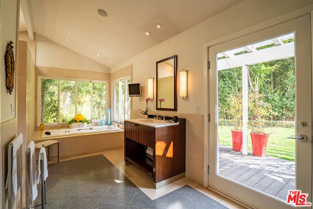 Quintessential Brentwood home. Light, bright, hedged indoor-outdoor living on a private lane. 3-bedroom, 2.5-bath. Wonderfully lush and private, as well as light-filled. Green views through each window and French door. Single-story ranch. Miele, Sub-Zero, Bose, appliances. Walker Zanger stone, Ann Sacks baths to name a few quality features. Long private drive with multiple parking spaces and a charge outlet for an electric car. Exceptional and vast covered veranda with a fireplace and skylights for lounging, working out, or working from home. Most discriminating private clients will love to be home here. DO NOT DISTURB OCCUPANTS...BY APPOINTMENT ONLY
