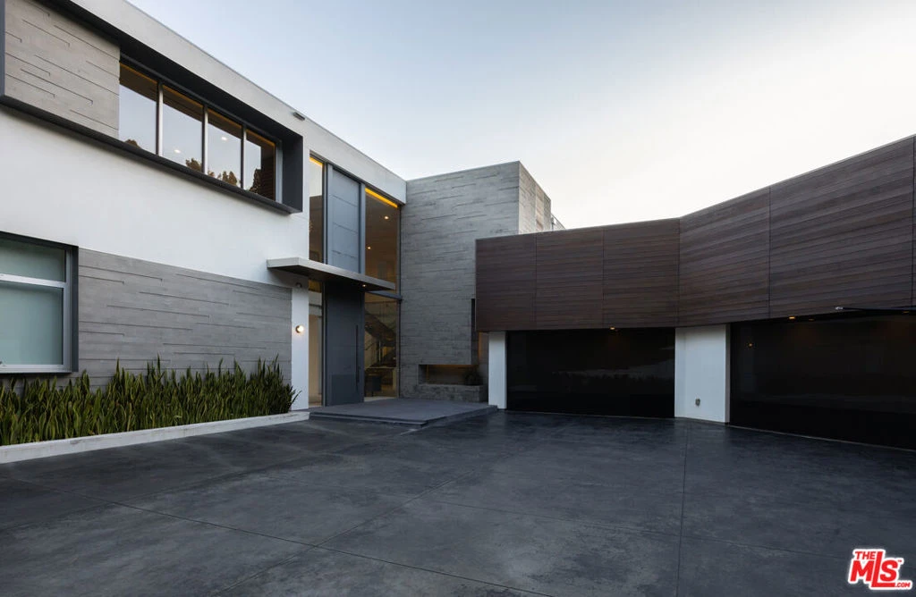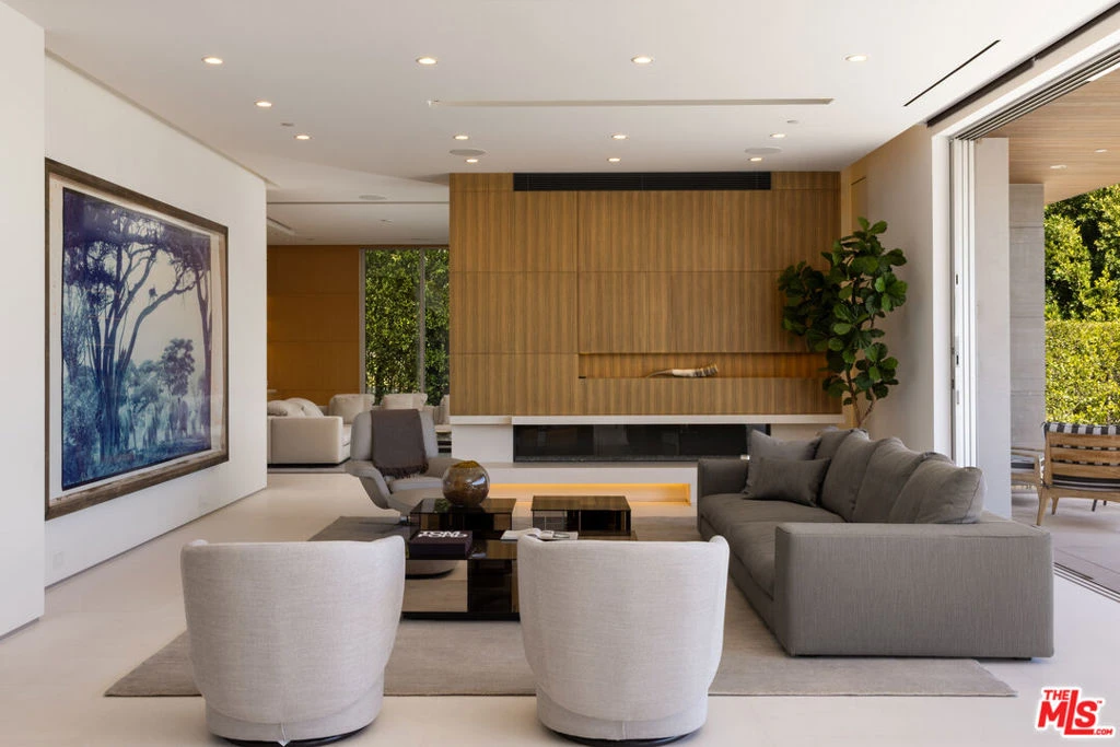 Perched on a secluded promontory above the Sunset Strip, this striking modern residence, newly constructed in 2020, is situated behind mature hedges, offering the utmost privacy, with unobstructed views of Los Angeles and beyond. Designed with California's signature indoor-outdoor flow, the three-level home artfully balances intimate retreats with grand-scale entertaining spaces. The gated entry, recently enhanced with expanded parking, leads to a dramatic double-height foyer that opens into voluminous living and dining areas. Expansive Fleetwood glass doors dissolve the boundaries between interior and exterior, framing the sweeping cityscape as they open to an infinity-edged pool and terrace that seem to float above the city below. The primary suite is a serene sanctuary unto itself, complete with a fireside sitting area, a private balcony overlooking the Los Angeles basin, dual dressing rooms, and spa-inspired dual bathrooms. For entertainment, the 12-seat private theater with its 20-foot screen and a 1,200-bottle wine cellar sets a standard rarely found even at this level. Additional amenities include a family room, office, library, open-concept kitchen with Miele appliances, a separate chef's kitchen, gym, three-floor elevator, full Crestron automation, and a four-car garage. Spanning approximately 10,500 square feet, this is a rare opportunity to own one of the most coveted modern estates in West Hollywood, just moments from the Sunset Strip's premier dining, shopping, and cultural destinations. A refined architectural statement where privacy, unobstructed views of Los Angeles, and effortless California living converge. A property of this caliber is best experienced in person.