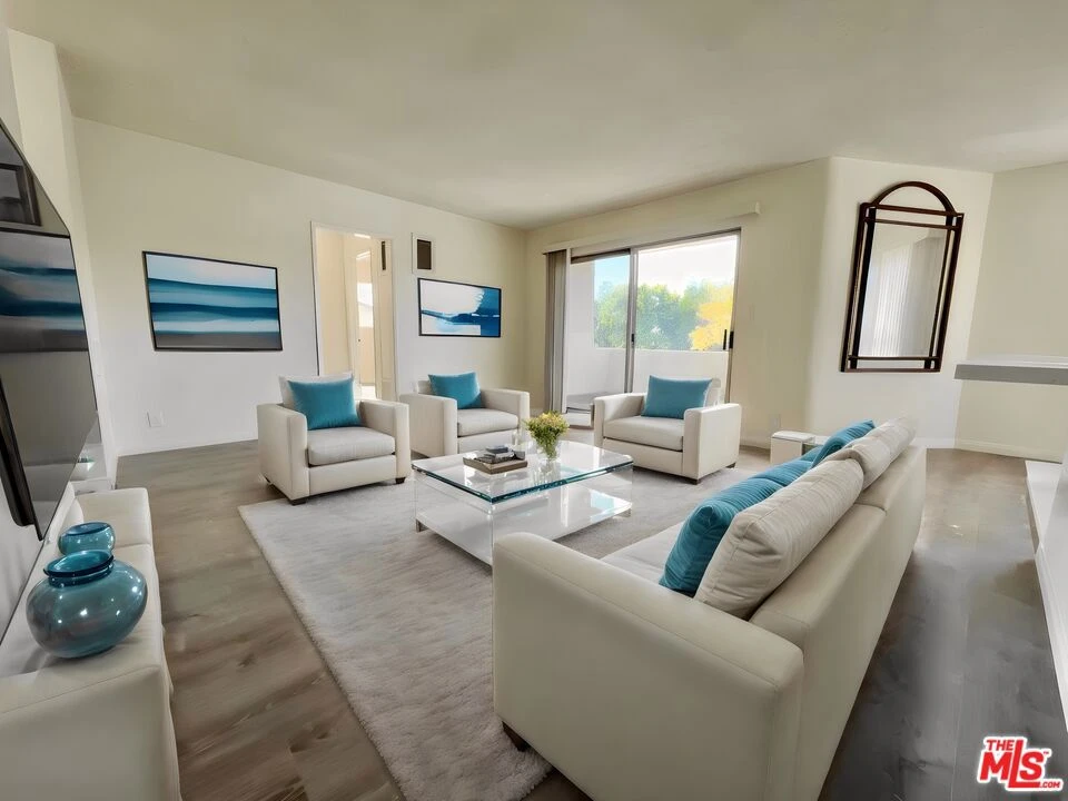 Indulge in upscale living within this recently updated 2-bedroom, 1.5-bathroom top floor apartment. Brand-new flooring, renovated kitchen and bathroom, and sleek stainless-steel appliances that combine to create a chic and inviting sanctuary. Bask in the abundant natural light that graces the spacious living room - which seamlessly extends to your very own private balcony with mountaintop and city views. Whether hosting guests or enjoying a quiet meal, the dining area and bar seating provide ample space. Two generously sized bedrooms offer comfort, with one featuring its own convenient en-suite half bath. Situated in a prime central location, with community laundry facilities and the added convenience of a designated parking space, this residence perfectly balances comfort and accessibility. Explore the convenience of strolling to nearby amenities and effortless freeway access, offering a delightful Los Angeles living experience!