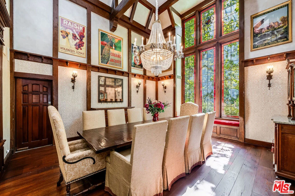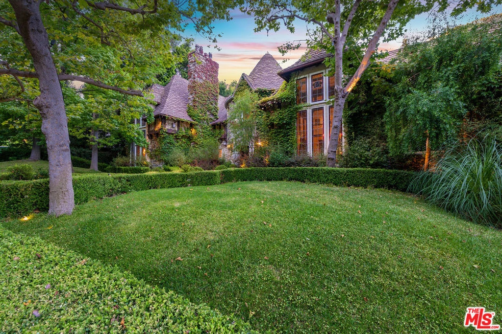 Behind the gates of the exclusive 24/7 guard-gated Moraga Estates in Bel Air, this extraordinary six-bedroom Traditional, storybook-style estate blends Old World European romance with elevated California luxury on an approximately 83,328-square-foot lot, just under two acres. The over 9,500-square-foot main residence is a masterclass in timeless architecture and refined living, set amid exquisitely landscaped grounds that include a private producing vineyard with mature Cabernet Sauvignon and Sauvignon Blanc vinesan exceptionally rare offering in Bel Air. The interiors unfold with warmth and grandeur. The main level features an elegant formal living room with fireplace and built-in bar, alongside a magnificent, showstopping library clad entirely in rich wood paneling, complete with custom built-ins, coffered ceilings, and a grand fireplacean extraordinary space worthy of a private estate. A gracious family room with fireplace, a dramatic foyer with sweeping spiral staircase, and a formal dining room highlighted by soaring two-story leaded and stained-glass windows create an atmosphere of romance and sophistication. The expansive gourmet kitchen is designed for both everyday living and entertaining, featuring a long eat-in center island, professional-grade appliances, and a sun-filled breakfast room that opens directly to the central courtyard. Outdoors, a fountain anchors the courtyard, complemented by a fully equipped outdoor kitchen with built-in barbecue and generous island seating. Architectural details throughout evoke enduring charmarched doorways, steeply pitched roofs, and ivy-draped stoneworkwhile the grounds are lush with mature trees and manicured gardens, offering exceptional privacy and serenity. A full-size tennis court, complete with an elevated viewing pavilion, provides a resort-style amenity ideal for both recreation and entertaining. The primary suite is a luxurious private retreat, featuring a fireplace, expansive private balcony overlooking the pool and gardens, and extraordinary dual custom walk-in closets designed to rival the finest boutiques. The spa-caliber marble bath includes a steam shower, sauna, soaking tub, multiple vanities, and a bespoke barber's chair. Additional highlights include an attached three-car garage and approximately 4,500 square feet of remarkable bonus space, once home to the world's largest antique slot machine collection. This versatile area features extensive built-in shelving and display cases, a custom train room, and endless potential for use as a screening room, gym, game parlor, or creative studio. A custom wine cellar carved directly into the hillside offers an exceptional environment for storing and showcasing a serious collection. The estate grounds are completed by a pool and spa, koi pond, formal garden, and vineyard, creating a setting of rare beauty and scale. Offered fully furnished for a seamless move-in or investment opportunity, this enchanting property is tucked within one of Bel Air's most coveted gated communities, moments from Brentwood, Beverly Hills, and top-tier schools. A truly rare legacy estate offering privacy, provenance, and timeless elegance.