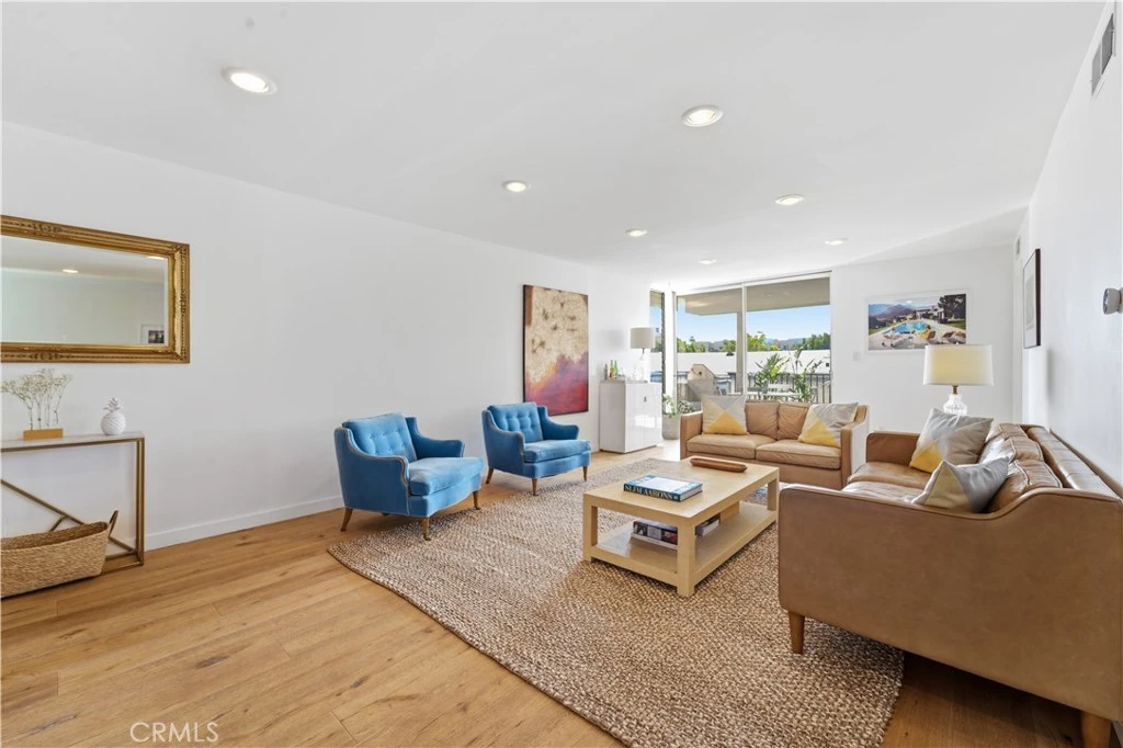 Welcome to this charming move-in ready condo, perfectly situated just north of Sunset Boulevard in a highly sought-after neighborhood. Inside, hardwood flooring extends throughout the open-concept layout, seamlessly connecting the spacious living room, formal dining room and well-equipped kitchen, which is outfitted with stainless steel appliances. Floor-to-ceiling windows flood the space with natural light, while a sliding glass door opens to the large private balcony, creating an effortless indoor-outdoor flow. Two generously sized ensuite bedrooms are thoughtfully positioned on opposite sides of the unit for privacy, each boasting a large closet with built-ins. Additional features include a Ring doorbell, Nest thermostat, August smart lock and two side-by-side parking spots in the secured community garage. Located within a well-maintained community offering a sparkling pool and on-site laundry facilities, this residence places you moments away from boutique shops, gourmet restaurants and lively entertainment options, as well as the scenic trails of Runyon Canyon.