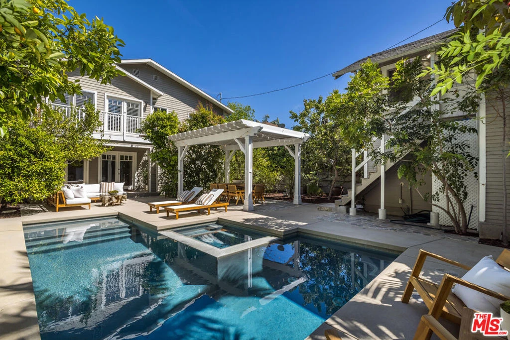 Set in the heart of Sunset Square, this extensively renovated Craftsman-inspired residence offers 3,331 sq ft of thoughtfully designed living on an expansive 7,561 sq ft lot. Timeless architectural character meets modern luxury in this turn key, 5 BD, 5 BA home. . A welcoming front porch opens to a two-story foyer, leading to a formal living room, dining room, and dedicated office, all anchored by high ceilings, rich hardwood floors, and classic detailing. The beautifully updated kitchen, featuring marble countertops, custom cabinetry, pantry and Viking appliances, flows into a generous family room, with French doors opening to the lush backyard for seamless indoor/outdoor living. Upstairs, the primary suite enjoys a private balcony, walk-in closet, and bath with soaking tub and shower. Three additional en-suite bedrooms complete the top level. A detached two-story converted garage adds exceptional versatility with a bonus recreation room and a separate studio apartment with kitchenette above. The private backyard is an entertainer's dream with a covered veranda, sparkling pool and spa, and a curated culinary garden with mature citrus, avocado, blueberries, and fresh herbs that brings farm-to-table living to your doorstep. Ideally located minutes from premier dining, boutique shopping, and scenic hiking trails .
