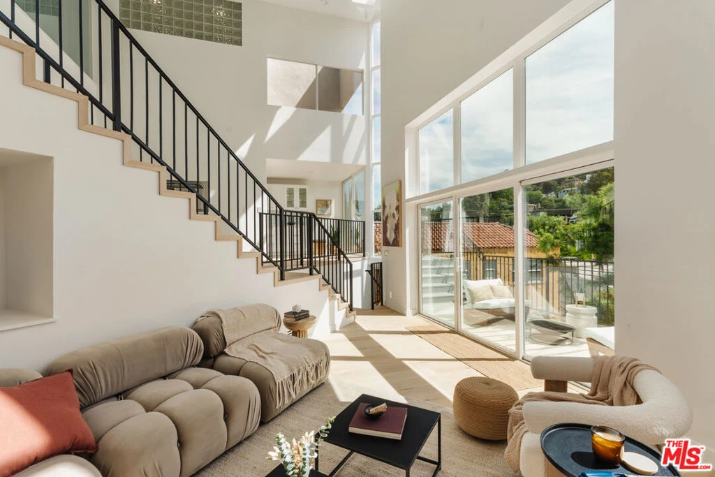A stunning architectural main residence in prime Silver Lake, with a detached duplex at the rear of the property. Designed in 1989 by AIA architect J. Frank Fitzgibbons, the main home is a bold modern statement, now fully remodeled with refined Scandinavian-inspired finishes. Dramatic volumes, soaring ceilings, skylights, and expansive windows create light-filled interiors centered around a sweeping architectural staircase.The residence includes three bedroom suites, including a primary retreat with dual closets, a private balcony off the bathroom, and smart privacy glass that can transform the space from open and light-filled to completely private at the touch of a button. A flexible den offers an ideal space for a home office or creative studio, and a two-car garage provides direct access. At the rear, a detached duplex at 1625 Rendall Place offers two one-bedroom, one-bath units totaling 1,140 square feet, along with three enclosed garages. Privately positioned and income-producing, it adds exceptional flexibility to this rare Silver Lake architectural offering.