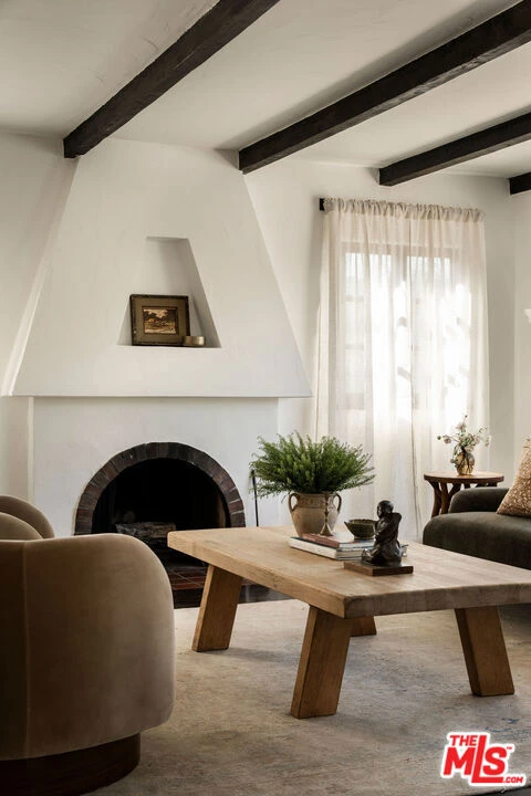 Ideally located in the heart of Silver Lake, this striking 3 bedroom, 2 bathroom 1927 Spanish residence sits on a rare street-to-street corner lot, just moments from the Silver Lake Reservoir and premier commercial offerings, including L&E Oyster Bar and LaMill Coffee. Wrapped in towering hedges and entirely gated and fenced, the home offers nearly 2,000 square feet of character-rich living space on an expansive 5,478 sq ft lot with a perfectly landscaped backyard set under towering trees - delivering a compelling blend of privacy, outdoor space, and classic architectural charm. Beyond the privacy gates, a Saltillo-tiled stairwell ascends to a rotunda foyer, opening into a living room with striking beamed ceilings and a dramatic picture window framing the surrounding hills. A traditional Spanish-style fireplace anchors the space, complemented by alabaster wall sconces and built-in niches that enhance the home's architectural character. Refinished original hardwood floors run throughout, with newly installed hardwood in the primary bedroom and lower-level den, adding continuity and warmth. A sunlit dining area sits adjacent to the open kitchen, featuring a generous center island with built-in bar seating, ample storage, Whirlpool stainless steel appliances, and a layout designed for effortless flow. The kitchen opens onto an outdoor deck, perfect for dining and relaxation. The main level features 3 bedrooms and 2 bathrooms, including a primary suite just off the kitchen. A wooden-beamed ceiling and paper lantern define the space, while direct access to a private backyard deck surrounded by greenery enhances the sense of retreat. Two additional bedrooms line the main hallway, offering comfortable proportions, ornate wrought iron window guards, and textured, rustic wall and ceiling finishes that reflect the home's Spanish character. A bright hallway bathroom with dual sinks and a tub/shower combo has also been updated with new mirrors, light fixtures, and fresh paint. The lower level offers a versatile den with its own exterior entrance, ideal for a media room, office, or guest space. Wall sconces and newly installed hardwood flooring add warmth and function. A dedicated laundry room with storage and a utility sink sits nearby, along with an adjacent bonus storage area for added convenience. Outdoor spaces are thoughtfully terraced and designed for both relaxation and entertaining. A dining area with built-in bench seating and a built-in BBQ sits beneath a graceful weeping tree, creating a romantic and laid-back setting. A grassy lawn and vegetable garden are surrounded by updated landscaping, including newly planted cypress and olive trees, semi-mature ficus, rosemary, and bougainvillea along the fence and entry. Mature hedging enhances privacy throughout. Additional features include a Nest doorbell and thermostat, as well as an ADT security system with panel and sensors, and gated parking. Ideally located near the Silver Lake Reservoir, walking path, and dog park, with easy access to neighborhood favorites including LaMill, Botanica, and L&E Oyster Bar, and located in the sought-after Micheltorena Elementary School (per LAUSD), this home places the best of Silver Lake right at the doorstep.