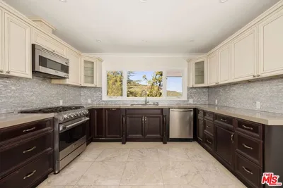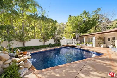 Perched at the top of Bel Air, 1743 Stone Canyon is a serene retreat surrounded by nature, light, and breathtaking views of the reservoir and canyon beyond. This private residence is thoughtfully designed to embrace its tranquil setting, with expansive windows and seamless indoor-outdoor flow that flood the home with natural light throughout the day. A graceful arrival leads into warm, open living spaces that connect effortlessly to multiple outdoor entertaining areas. The resort-style backyard features a sparkling pool with waterfall accents, lush landscaping, and sun-drenched patios perfect for quiet mornings or lively gatherings. A central courtyard with a fire feature adds an intimate focal point, ideal for evenings under the stars. The home's layout offers exceptional privacy, with the primary suite set apart in its own wing, creating a true sanctuary separate from the additional bedrooms. An open chef's kitchen, with breakfast bar and breakfast room open to the spacious living room with floor to ceiling windows. Additional rooms include the cocktail room and dining room, perfect for entertaining. This restful retreat enjoys peaceful views and a sense of seclusion, while the opposite wing comfortably accommodates family or guests. Surrounded by mature trees and greenery, the property feels worlds away yet remains moments from the best of the city. Elevated, quiet, and immersed in nature, this Bel Air residence offers a rare combination of privacy, light, and timeless California living and is located just moments from the coveted Hotel Bel Air.