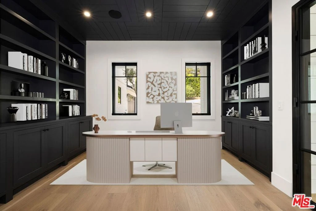 Tucked at the end of a cul-de-sac, this brand-new 10,500 sq. ft. Brentwood estate blends clean modern design with resort-style amenities and sweeping Pacific Ocean and city views. The main level offers formal living and dining rooms, a front office, and an open-concept family room that flows into a chef's kitchen with Wolf appliances, porcelain counters, butler's pantry, and breakfast nook. Walls of glass open to a grassy yard, infinity-edge pool, and outdoor kitchen with BBQ ideal for entertaining. The home features 7 ensuite bedrooms, including a downstairs suite and a spectacular primary retreat with dual vanities, soaking tub, oversized shower, and a private balcony overlooking the ocean. Four additional guest bedrooms each enjoy their own baths on the upper level. A pajama lounge and upstairs laundry add convenience. The lower level is an entertainer's dream with a basement bar, temperature-controlled wine room, private theater, gym, steam room, and flexible space perfect for a second office. Additional highlights include an expansive upper deck with panoramic views, metal roof, elevator, multi-zone HVAC, central vacuum, alarm system, mud/laundry room with dog wash, and 3-car garage. This is a rare opportunity to lease a newly built, private estate combining elegance, function, and breathtaking views.