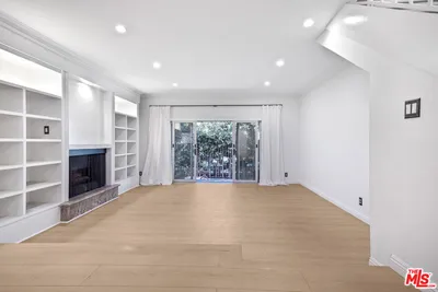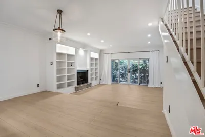 Elegant and spacious 3-bedroom, 3-bath Westwood townhome offering refined comfort, thoughtful updates, and a private outdoor retreat. Newly installed flooring flows throughout the home, while the beautifully updated kitchen features quartz countertops, a tiled backsplash, custom cabinetry, and a charming breakfast nook. Just beyond, the dining area is ideally positioned for both everyday living and entertaining, complete with a custom built-in bar and wine fridge. A step-down living room creates a warm and inviting focal point, enhanced by a custom built-in bookcase and direct access to a serene, tree-lined private patio. Surrounded by mature hedges and anchored by a graceful magnolia tree, this outdoor space feels like a true hidden oasis in the heart of Westwood. Fireplace is for decorative purposes only. The first floor also includes a welcoming entry with closet, a versatile bedroom or bonus room, an updated bath with shower, and conveniently located in-unit side by side washer and dryer. Upstairs, the generous primary suite is filled with natural light and architectural character, highlighted by a dramatic floor-to-ceiling arched window with custom shutters, high ceilings, recessed lighting, and a large walk-in closet. The en-suite bath features a skylight, glass-enclosed tub and shower, spacious vanity, and additional storage. A third bedroom and full bath complete the upper level.Additional amenities include tandem parking for two cars in a gated subterranean garage, a personal EV charger, and a spacious private storage unit with built-in shelving located just steps from the parking area. Four guest parking spaces are also available in the garage. Ideally situated in one of Westwood's most convenient locations, this home is moments from an array of shops, restaurants, and daily conveniences, UCLA and near highly regarded Westwood Charter Elementary. Offering space, privacy, and elevated living, this exceptional townhome presents a rare lease opportunity in a sought-after neighborhood.