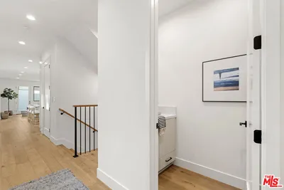 Welcome to Villa Benecia, Spanish for "the blessed one." This stunning, brand-new 2026 Thomas James Homes (a national leader in high-quality residences) modern Spanish-style townhouse condominium built with quality craftsmanship, never lived in, features an elevator, attached garage, and an exceptional location in the highly sought-after Century Glen neighborhood. Ideally located just west of Westfield Century City and east of Beverly Glen, the home is blocks to fine dining, shopping, fitness centers, and more. Positioned on a hilltop, the residence offers beautiful views of the Century City skyline. Enter from the attached garage or through the formal covered front door into a dramatic entry hallway with high ceilings and warm hardwood floors. The main level features an open-concept dream kitchen with Wolf and Sub Zero appliances, a large center island seating up to six, a spacious living room with gas fireplace, and a generous balcony overlooking the private yard below. This level also includes a powder room and elevator access to all three floors. The top floor offers a luxurious primary suite and a guest bedroom, both with en-suite bathrooms, along with a laundry room and a flexible landing area ideal for a desk or seating nook with Century City views. The primary suite boasts abundant natural light, views of the Wilshire Corridor skyline, a walk-in closet, and a spa-like bathroom with expansive vanities, a large shower, and a freestanding soaking tub. The guest bedroom features ample closet space, a well-appointed en-suite bath, and stunning skyline views. The lower level, adjacent to the private backyard, provides an expansive open space ideal for a second guest suite, screening room, or entertainment area, complete with an en-suite bathroom. Rare offering with New Solar Panels on Roof. One of only two units available.
