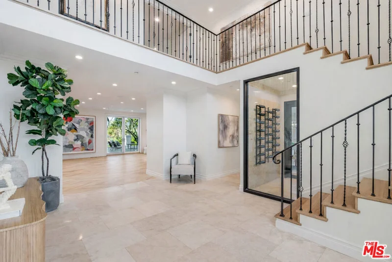 Stunning Warm Contemporary Home located in a peaceful and private setting on nearly half an acre in the heart of Bel Air. 1 of only 5 properties on Bel Air Road with unobstructed views of the Stone Canyon Reservoir. Fully rebuilt and reimagined throughout with exceptional design and luxurious attention to detail. A bright open floor plan showcases 6 bedrooms, 9 baths, a minimalist aesthetic with tons of natural light and incredible indoor/outdoor living spaces. Outdoors is a spectacular fully-private backyard with pool, spa, full outdoor kitchen and beautiful landscape design. The outdoor space provides hosting opportunities on a large scale while facing the dramatic water views. The custom gourmet kitchen features Thermador/La Cornue appliances, large center island with seating and walk-in pantry. There's a wellness retreat with gym, cold plunge and outdoor barrel sauna overlooking the reservoir. Additional features include smart home systems, camera security, elevator, wine cellar and a gated motor court with 100 ft gravel driveway. A beautiful move-in ready modern home offering exceptional design, privacy and the feeling of a European lakeside villa.