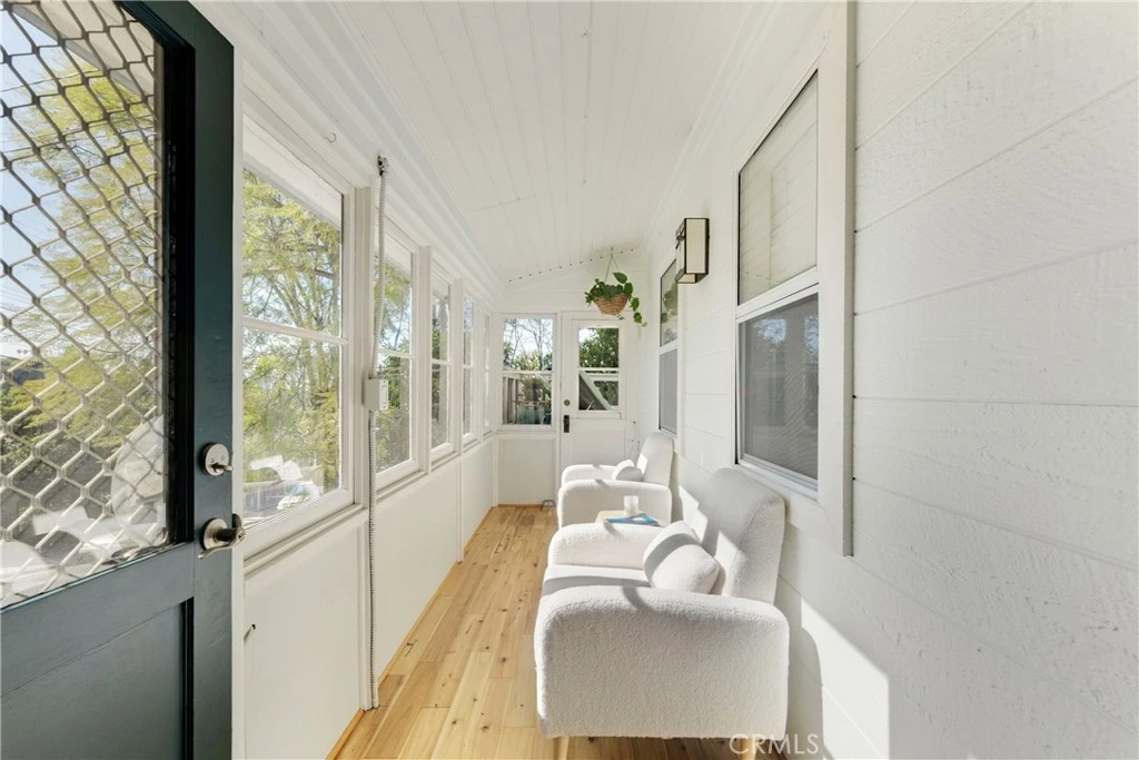 Tucked into the quiet, verdant hills of Elysian Heights just moments from Sunset Blvd. and Echo Park Ave, this rare offering expresses timeless soul with modern comfort. This 3 bed+loft / 2.75 baths with 2,044 sqft blends beautiful original Craftsman aesthetics with upgraded features. Highlights include owned solar panels, hardwood floors & high ceilings throughout. Set back behind a white picket fence offering added privacy and an unobstructed streetscape (no street-parking on this side). A lush front yard anchors the home with a striking Seco palm as its focal point. Step through the front door to a luminous, airy enclosed front porch, perfect for relaxing. A wide, naturally lit living room creates an inviting space with original hardwood floors. Columns frame the archway leading to the dining room where wooden French doors peer out to flagstone deck - creating indoor/outdoor flow. The open, updated kitchen brings together quartz surfaces, glass-tile backsplashes, tile flooring & a walk-in pantry. On the main floor you’ll find a well-scaled bedroom with access to a full hall bath. Upstairs, a large landing space makes for a wonderful home office/study. The primary suite boasts cathedral ceilings, a gas fireplace, bay windows with shutters, a walk-in closet & spa-like en-suite bath with dual sink vanity & dual shower-heads. The charming third bedroom offers picturesque views, especially at sunset, out to Downtown LA & the surrounding hills. Outdoors, the home delivers a trifecta of spaces including a flagstone terrace spanning the width of the home, a pergola-shaded deck with hot tub & a lower-level paved patio & succulent garden, ringed with mature fruit trees. The detached, intentionally renovated guest house / ADU (no permit) features high ceilings, wood-accent walls, kitchenette, ¾ bath, HVAC wall unit & lofted sleeping area (fits queen). As a creative retreat, rental unit or ancillary studio, it adds remarkable flexibility & value. The basement offers vast storage space & dedicated laundry area, Culligan water softener & updated furnace & water heater. Additional features include a newer roof as of 2023, all interior closets lined with cedar wood & laundry hookups on the main floor of the home. Wonderfully situated in a friendly residential neighborhood in close proximity to local favorites including Canyon Coffee, Bacetti, Valerie & Cookbook Market. Plus easy access to the trails of Elysian Park, Dodger Stadium & Echo Park Lake.