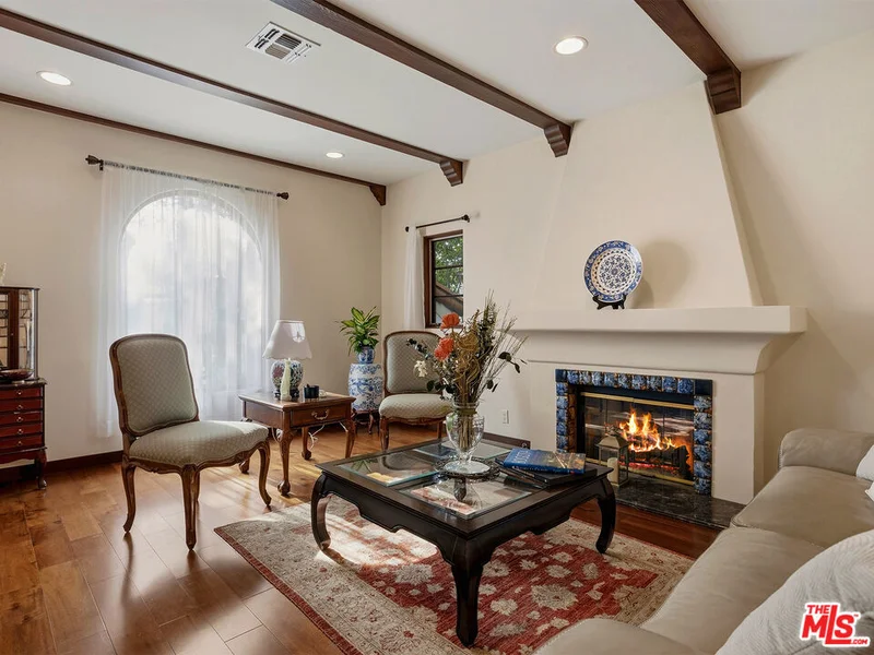 This picture-perfect Spanish Revival home blends timeless character with thoughtful modern upgrades. Fully remodeled in 2011, it welcomes you with Acacia wood floors, a marble tiled entry, mahogany doors, and wood trimmed windows that set an elegant old-world tone. The living room preserves its original 1930s charm with exposed wood beams and a woodburning fireplace framed by authentic Batchelder tiles. Each of the four bedrooms include their own ensuite full bathrooms and French doors opening to private balconies. The generously sized primary suite features a gas fireplace, trellised balcony, and a large walk-in closet with custom cabinetry. Its spa-like marble bathroom offers a full-sized spa tub, towel warmer, and a TV niche for relaxing evenings. A downstairs bedroom provides an ideal space for guests or a home office. Modern comforts include dual HVAC systems, dual tankless water heaters, and an upstairs laundry room. The kitchen has just been updated, and the entire home has been freshly painted. Outside, the private backyard offers a Spanish tiled patio, a variety of fruit trees, and a newly remodeled garage. Centrally located with easy access to all of Los Angeles, Santa Monica, Century City, Beverly Hills, this home is a rare blend of character, comfort, and convenience. Property owners are licensed real estate professionals, listing broker part owner.