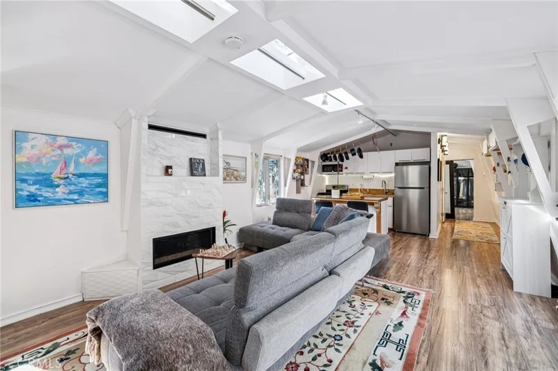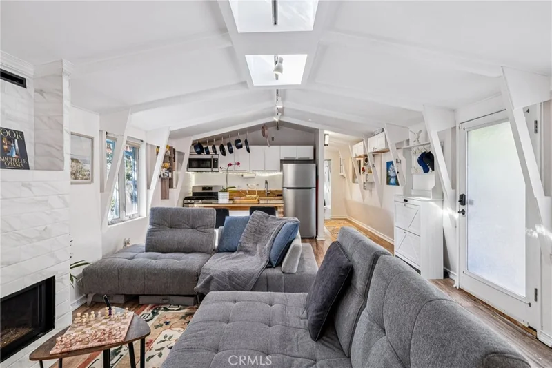 Proudly introducing this charming Bel Air bungalow—your own private hideaway nestled in the Beverly Glen Canyon area. This 2-bedroom, 1-bath residence offers 960 sq ft of thoughtfully designed living space on an expansive 5,590 sq ft lot, creating a rare blend of privacy and convenience. Upon entry, you’re welcomed by luxury vinyl plank flooring, track lighting, multiple skylights, and a cozy gas fireplace that anchors the open-concept living area. The kitchen seamlessly connects to the main living space and features butcher block countertops, stainless steel appliances, and a stylish fixed island—perfect for everyday living and entertaining. The secondary bedroom includes luxury vinyl plank flooring, track lighting, double-pane windows, and generous closet space. The modern bathroom is highlighted by a sleek tile shower, contemporary vanity, LED mirror, and skylight that fills the space with natural light. The spacious primary bedroom offers vaulted ceilings, multiple skylights, a walk-in closet with washer and dryer setup, and direct access to the backyard—ideal for indoor-outdoor living and future possibilities. This property features a secluded hillside terrace that provides beautiful nature and an expanded patio deck with a built out pergola and bamboo perimeter! Conveniently located just minutes from Beverly Hills, Century City, and UCLA-Westwood, this Bel Air retreat is also within the highly sought-after Warner Avenue School District. A rare opportunity to own a serene canyon escape with prime city access.