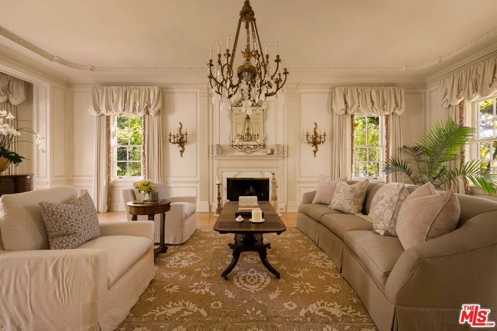 The Jean Harlow Estate - the legendary residence of Hollywood icon Jean Harlow, embodying the timeless elegance of Hollywood's Golden Age. Set quietly on approximately 1.32 private acres behind a canopy of original grand magnolia trees, this stately red-brick manor is among the most beautiful and architecturally distinguished estates in Los Angeles - grand, expansive, and truly one of a kind. Built in 1932 and designed by architect C.B. Clyne in the American Colonial Revival style, the estate is privately positioned behind gates in Holmby Hills, approached through sweeping landscaped grounds that evoke the grand estate style of the 1930s. The grounds are anchored by a large pool with original diving board and spa, a beautifully proportioned two-story pool house with balcony and French doors, a full-size tennis court, koi ponds, waterfall, greenhouses, winding nature paths, and a temperature-controlled wine cellar - all enveloped by mature landscaped gardens of extraordinary depth and character. The residence spans approximately 7,367 square feet, with an additional 1,320 square foot detached guest/pool house, and unfolds through a series of gracious formal rooms of genuine beauty - boiserie paneling, exceptional crown moldings, and marble fireplaces. A dramatic glass conservatory floods with natural light and opens directly to the gardens beyond. The library retains its original arched built-in bookcases - photographed with Harlow herself and visibly unchanged today. A hidden Prohibition-era bar remains one of the home's most extraordinary original details. The primary suite is a true retreat - sprawling in scale with dual bathrooms and two walk-in closets, offering both privacy and symmetry rarely found in homes of this era. Moments from the best of the Westside and Beverly Hills, the Jean Harlow Estate stands among the most exceptional and irreplaceable estates in Los Angeles - a property of rare beauty, remarkable history, and enduring legacy.