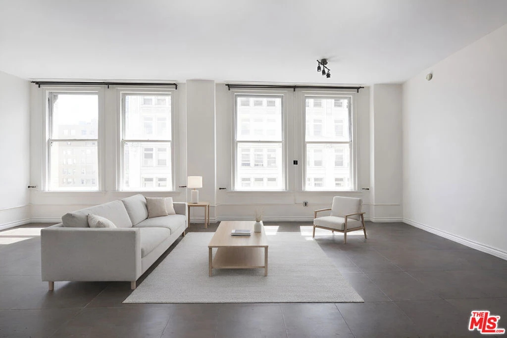 Welcome home to this bright and airy south-facing 1 bed/1 bath at the historic Bartlett Building. The live/work loft is currently under the coveted MILLS ACT contract for massive property tax savings for owners. Featuring six large windows that span the entire side of the unit, the loft is filled with natural light throughout the day. Nearly 11-foot ceilings and concrete floors add to the urban loft aesthetic. The open plan living space features a custom built wall storage structure and a powerful AC/heater, and the flexible creative space flows seamlessly into the kitchen for easy entertaining. The kitchen is equipped with a new oven/stove, plus there is a stainless steel dishwasher, fridge and microwave. The completely separate south facing bedroom features an ensuite bathroom and oversized windows. There are W/D hookups inside the bathroom that features an oversized soaking tub. HOA dues include water and trash, plus 24/7 front desk security and reception, a stunning 270-degree rooftop deck/lounge area, and 3rd floor courtyard. Situated in the heart of the historic core with a Walk Score of 98, you're within a few blocks of the best of DTLA, such as Grand Central Market, upcoming Erewhon Market, Whole Foods, Ralphs, Apple Store, LA Athletic Club, Metro lines, Target, The Bloc, Fashion District, Disney Concert Hall, The Broad Museum, Ace/Hoxton/Proper/Freehand hotels, and local favorites such as Holy Basil, Kazunori, Bottega Louie, IL Caffe, FIGat7th, Spring Arcade, Sunday Farmers Market, The Last Bookstore, and much more.