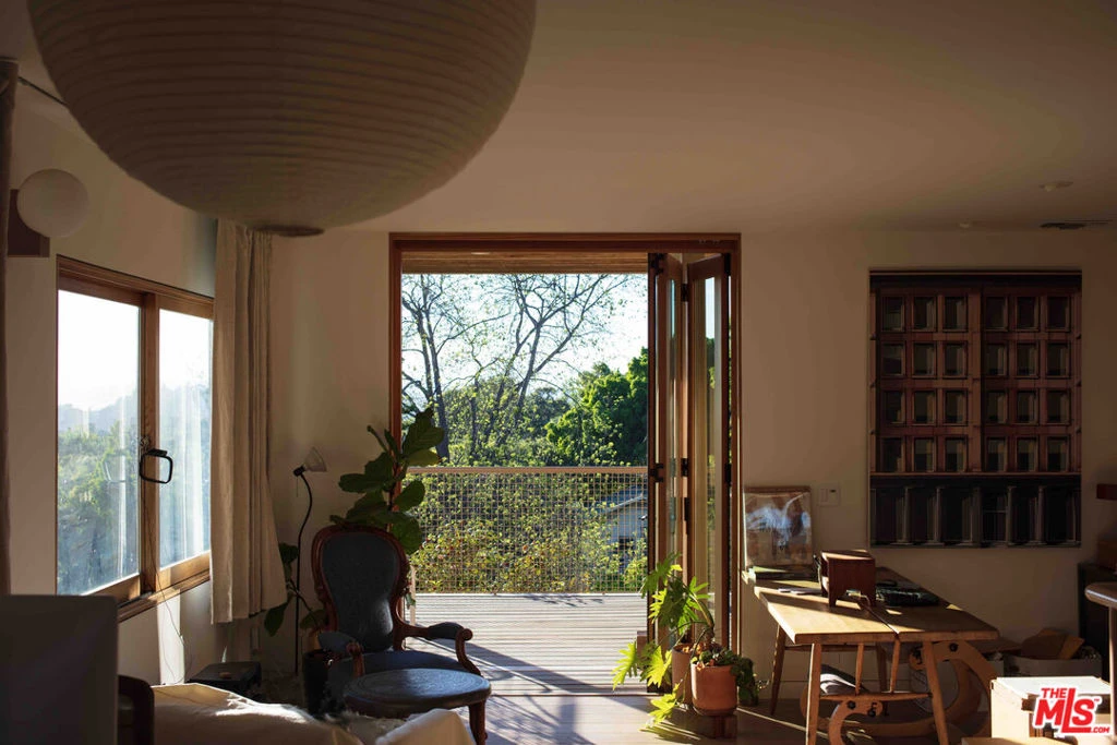 Two months furnished lease in this beautiful architectural home in Echo Park. Close to coffee shops and restaurants. Beautiful views from the balcony into the hills and from the covered patio, which can be completely opened up from the living room into the garden. Remodeled by Mexico City-based architecture firm PRODUCTORA. They extended the small California Bungalow through a grid-like steel frame. "Six cubic squares make up the framework of the addition, which includes covered terraces, the upstairs master bedroom, and two new interior spaces that are incorporated into the kitchen area on the lower level. The placement just a few feet shy of the original facade creates a transitional space that mediates between the house and garden, protecting it from the afternoon sun. Focusing on a minimal material palette, elements of the design are reinforced and repeated to create a cohesive set of interconnected spaces. The same marble that lines the bathtub also forms the kitchen countertop. Highlighting the tension between texture and solid color, the architects incorporated oak wood and concrete flooring with wooden cabinetry painted in soft pinks and dark green." (Dwell, 2017)