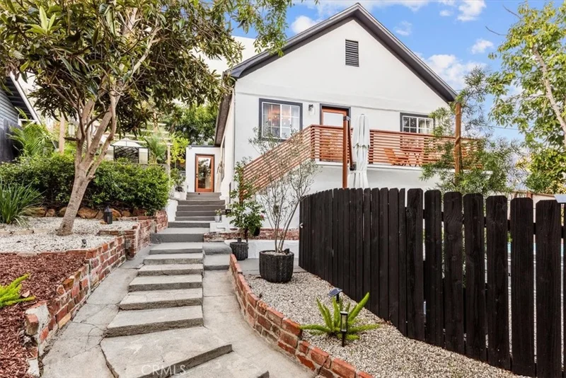 NEW PRICE !!! Perched atop a gentle hillside in Silverlake, 2207–2209 Apex Ave captures the essence of California living where historic charm meets modern design. Reimagined with a fresh architectural perspective, this dual-residence estate offers a rare balance of artistry, comfort, and flexibility in one of Los Angeles’s most sought-after neighborhoods. Behind a private gated entry, the residence unfolds into two harmonious homes surrounded by lush greenery, curved pathways, and thoughtfully designed outdoor spaces. The crisp white exterior, accented by black trim and warm amber wood, sets a timeless tone that continues throughout, as every corner invites connection to nature and the laid-back sophistication that defines Silver Lake living. Lush landscaping with intimate garden nooks creates great areas for morning coffee or evening wine, while multiple outdoor areas including a cowboy pool, fire pit, pergolas, and a charming greenhouse offer inviting spaces for relaxation and entertaining. From sun-dappled afternoons to evenings beneath the stars with views of the downtown skyline, the home is a private oasis above the city. Natural light floods large windows and glass doors, blending indoor and outdoor spaces seamlessly. The home has airy living areas where mid-century influences meet a warm California coastal aesthetic. Reclaimed original hardwood floors lend authenticity, grounding the modern updates with a sense of timeless character, while curated fixtures and natural hues create a soothing, artful ambiance. The kitchen features quartz countertops, custom fixtures, and stainless steel appliances, making the space ideal for cooking and gathering. The bathroom balances the home’s natural palette with refined boutique-style details that evoke the calm of a modern retreat. The main home includes two bedrooms and one bathroom, along with a bay window looking out to the outdoor patio. Downstairs, 2209 offers a remodeled kitchen, bathroom, and private front yard. With its own entrance, the studio mirrors the thoughtful craftsmanship of the home, offering charm without sacrificing value or privacy, ideal for extended family, guests or rental income. Minutes from Sunset Junction, residents enjoy effortless access to Silverlake’s beloved cafés, boutiques, and dining scene. More than a home, this is a private hillside sanctuary that celebrates character, creativity, and connection, a true reflection of Silverlake’s soul: artistic, inspired, and timeless.