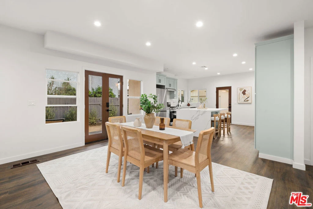 Welcome to a beautifully reimagined residence that seamlessly blends timeless 1913 Craftsman character with a full modern transformation in the heart of Mid-City.From the moment you arrive, the inviting large front porch and classic Craftsman curb appeal set the tone for a home filled with warmth, charm, and elevated style. Inside, the home unfolds into a light and bright open floor plan designed for effortless modern living, where natural flow and thoughtful design take center stage. The heart of the home is the stunning open-concept kitchen, featuring shaker-style cabinetry, gleaming quartz countertops, a large center island, and abundant cabinet storage. Designed with both beauty and function in mind, this space is perfect for everyday living as well as entertaining. Durable wood-look laminate flooring runs throughout the home, complemented by recessed lighting that enhances the clean, contemporary aesthetic. French doors off the dining area create a seamless connection to the outdoors, enhancing the California coastal feel and inviting natural light throughout the main living spaces. A convenient powder room is located on the main level, while the desirable layout places the primary suite downstairs for comfort and privacy. Upstairs, two additional bedrooms and a well-appointed bathroom provide flexible space for family, guests, or work-from-home needs. The expansive backyard offers a rare combination of usable outdoor space with lush grass and decomposed granite, ideal for relaxing, entertaining, or future customization. Completing the property is an oversized detached two-car garage, presenting exceptional potential for an ADU conversion or additional income opportunity. Modern comfort is assured with central HVAC, while the central Mid-City location places you moments from the best of Los Angeles living, dining, shopping, and major transit routes. This is more than a home. It is a rare opportunity to own a thoughtfully curated blend of historic charm, modern luxury, and future potential in one of LA's most dynamic neighborhoods.
