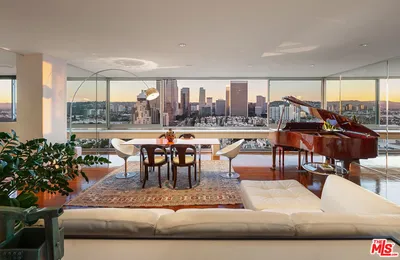 Located in the iconic Century Towers designed by world renowned architect I.M. Pei, Residence 1802W offers unobstructed 270 degree jetliner views and represents a true masterpiece of refined Los Angeles city living. Positioned on the 18th floor, the home enjoys absolute privacy from the neighboring tower, with sweeping vistas extending from the Santa Monica coastline through Century City and Beverly Hills to the rolling Santa Monica Mountains and the Griffith Observatory. Upon entering, you are immediately welcomed by expansive city views from the main living areas, creating a dramatic yet serene first impression, with a full guest bathroom conveniently located nearby for entertaining. Currently configured to maximize lifestyle and hosting, the residence features a spacious primary suite and a second bedroom thoughtfully transformed into a bespoke library and lounge, anchored by a custom bar and wine refrigeration for intimate evenings and gatherings. A quiet luxury aesthetic defines this unit, enhanced by newly installed high performance windows, premium finishes, and a custom steel and stone entry door that opens into a 1,633 square foot floor plan balancing open horizons with privacy and comfort. A high fidelity ceiling audio system is installed throughout the unit. The kitchen is designed with Sub Zero and Viking appliances paired with an Axor semi professional faucet, while the bathrooms have been curated as a wellness retreat featuring a walk in steam sauna with dual shower heads, a therapeutic soaking tub with ionized air bubbles, updated sinks, and Axor fixtures. Residents of Century Towers enjoy full service amenities including a 24 hour guard gated entry, valet parking, concierge services, tennis courts, and a resort style swimmers pool, making this a rare turnkey opportunity that seamlessly combines architectural pedigree, privacy, and a thoughtfully designed, entertainment focused layout in one of Los Angeles' most iconic residential buildings.