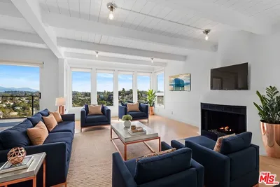 Nestled in Franklin Hills, one of Los Feliz's most coveted and pedestrian-friendly neighborhoods, this exquisitely reimagined mid-century residence offers timeless architecture, elevated living, and sweeping panoramic views from the moment of arrival. Thoughtfully remodeled in 2014, the multi-level home spans over 2,300 square feet of sophisticated living space, seamlessly blending classic design with modern refinement.Wide-plank hardwood floors anchor the interiors, while multiple expansive decks create a seamless indoor-outdoor flow ideal for elegant entertaining or serene moments overlooking the city. The residence features three bedrooms, three and a half baths, and a versatile den, thoughtfully designed to accommodate today's dynamic lifestyle.Privately situated on its own level, the expansive primary suite is a true sanctuary, complete with a spa-inspired marble bath featuring an oversized shower and soaking tub, a custom walk-in closet, private balcony, and an additional flex space ideal for a nursery, reading lounge, or home office. The lower level offers a secondary bedroom with a custom Italian-crafted Murphy bed, providing exceptional flexibility for guests or a refined workspace, along with an adjacent den or office that may also function as an additional bedroom.Ideally located moments from beloved restaurants, cafes, and shopping, this exceptional residence captures the essence of refined Los Feliz living where architectural elegance, comfort, and an unparalleled location converge effortlessly.