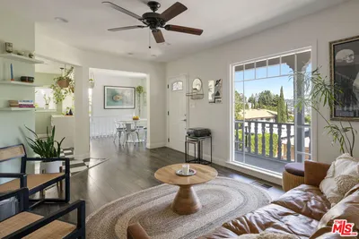 Silver Lake living feels exquisite in this 1930 Spanish, reimagined with modern sensibility and enjoying sweeping hillside views. The tri-level layout balances original charm and smart updates, featuring bright, airy rooms with effortless flow. In the living room, a large picture window frames the hills in golden light; the dining room centers on a grand arched window, a perfect backdrop for gatherings. The open kitchen is finished with waterfall quartz counters, stainless appliances, counter seating, and abundant storage. Three bedrooms and two updated baths provide versatility, including a lower-level suite with private entrance, full bath, and laundry, ideal for guests or creative work.Lush outdoor space expands across multiple terraces: a deck above the garage for sunset cocktails, a rustic stone patio for relaxing, and a serene garden retreat.From this street-to-street lot, enjoy proximity to the Reservoir, Meadow, Silver Lake Wine, Whole Foods, and local favorites along Glendale Boulevard.
