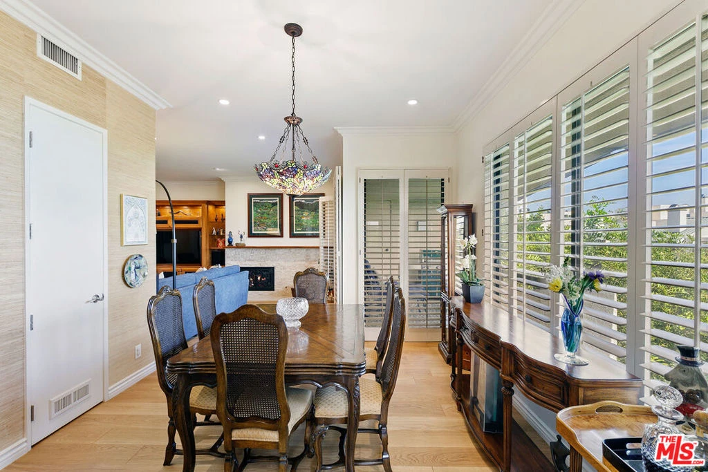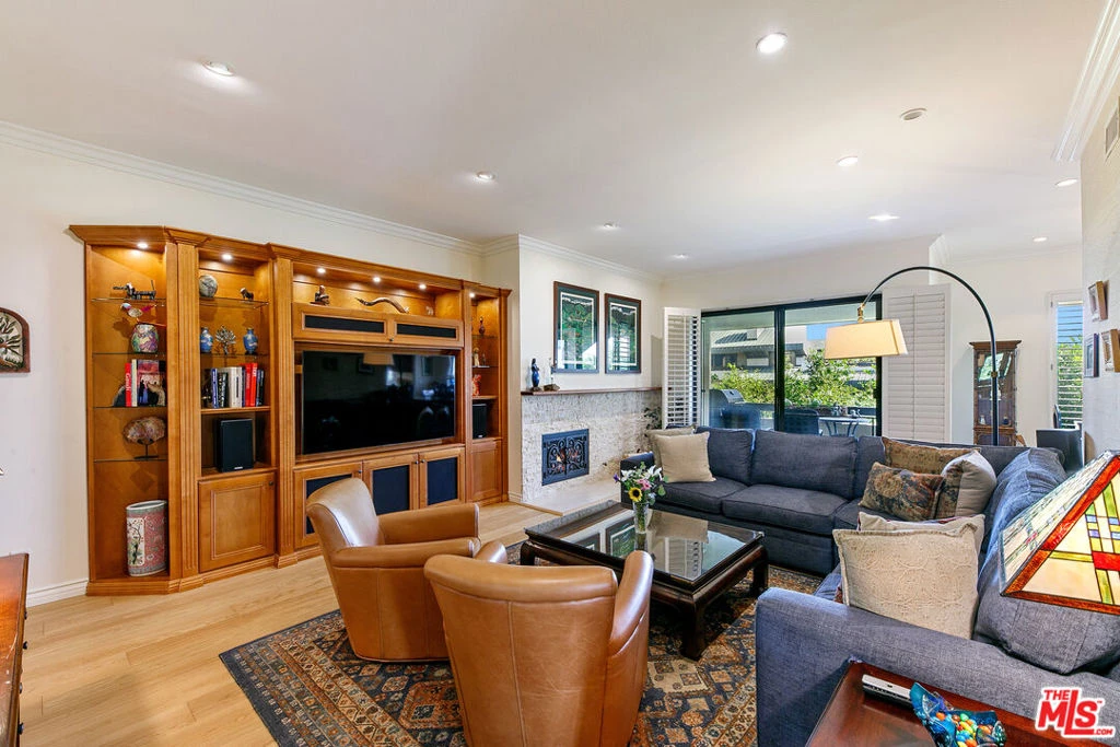 Behind the gates of Century Hill, one of Century City's most secure, resort style communities, this rare single level corner home unfolds like a private retreat. Sunlight pours across French oak floors as custom millwork, grass cloth accents, and a walnut framed fireplace create a warm, elegant welcome. The chef's kitchen is a standout, with custom cherry cabinetry, granite counters, Italian porcelain floors, and premium Subzero, Wolf, and Miele appliances. The formal dining room leads to a beautifully crafted wine room, while the serene primary suite offers remote blackout shades and a spa caliber bath with heated soaking tub, walk-in shower, and custom cabinetry. A second ensuite bedroom, powder room with copper sink, full laundry room, and extensive built-ins complete the interior. Two spacious decks extend the living space outdoors, surrounded by the quiet, parklike grounds Century Hill is known for and vistas towards Griffith Park Observatory and beautiful Le Parc, Parisian Village, across the way. Modern comforts include Nest climate control, LED lighting, an 80-gallon recirculating water heater, and plantation shutters. Exceptional parking: three deeded spaces, including one with a Level 2 EV charger, plus a large private storage room. Century Hill offers 24 hour guarded security, five pools/spas, tennis courts, racquetball, top of the line fitness center, and a well-equipped clubhouse with catering options, moments from Westfield Century City and Beverly Hills. A rare blend of luxury, privacy, and lock and leave peace of mind.