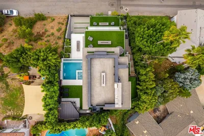 This multi-tiered modern sited hillside home embraces the Hollywood/Beachwood area with full advantage of the city lights and scene stealing views of the Hollywood Hills iconic signage. Constructed in 2019, this homes meticulously planned architectural design maximizes natural light and has features of a height grand great room, open concept living with full floor to ceiling windows, complete with access to indoor/outdoor extensive entertaining grounds. The Chef's kitchen, includes, leather countertops, Italian porcelain floors, Miele appliances, and a sizable island with suitable seating. The great room opens to a relaxing atmosphere where you can swim in the in-ground pool, spa, and dine in the outdoor kitchen with an exterior powder room for you and your guests to relax and enjoy. The private primary suite has a lounge, private deck with it's own fire pit, and night life views with dual bathrooms featuring Porcelanosa vanities, Poliform closet, a grand soak-in tub with a separate steam shower. An additional feature includes an elevator which purposely brings you to every floor of your choosing while rounding out this unique interior with features of multi level patios, decks for private gathering spaces, and repurposed speak easy outdoor living with an abundance of low maintenance turf! There is a temperature controlled wine room, 2 garages: (1) 2 car garage, and (1) 1 car garage with 2 exterior parking spaces allowing for a total of 5 parking spaces on property. Completing the amenities is a Control 4 system which allows you to personally control the home with complete ease. If you want more, there is more! There is a roof top deck with 270 degree views, outdoor fire pit, complete with a kitchen allowing for an abundance of Hollywood Sunsets! This is the best the Hollywood Hills has to offer and you must preview to witness how you can make this your own!