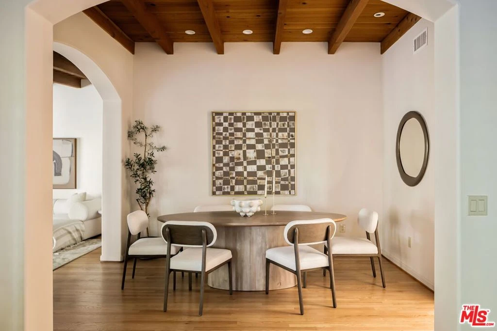 EXCEPTIONAL VALUE IN PRIME CHEVIOT HILLS. This spacious traditional home is filled with natural light and set on a large lot with mature landscaping, offering privacy, great scale, and flexible living spaces. The home features 7 bedrooms and 7 bathrooms with an excellent layout, including three bedrooms on the main level and four bedrooms upstairs. A welcoming entry showcases a beautiful custom mosaic detail in the flooring. The well-appointed kitchen includes granite countertops, double ovens, ample cabinetry, a large center island with seating, a breakfast nook, and a high ceiling with a skylight that fills the space with natural light. The living, family, and dining rooms all feature beamed ceilings, with a fireplace in the living room, creating warm and inviting spaces ideal for both everyday living and entertaining. Upstairs, the primary suite offers dual walk-in closets and a spa-like bathroom with double vanities, abundant natural light, a soaking tub, and a steam shower. Three additional ensuite bedrooms and a large bonus area complete the second level. The private backyard features a covered patio ideal for outdoor dining and entertaining, along with generous yard space. Additional highlights include a 2-car garage and abundant storage throughout. A well-scaled home with excellent natural light, privacy, and versatility, offering one of the best values in Cheviot Hills.